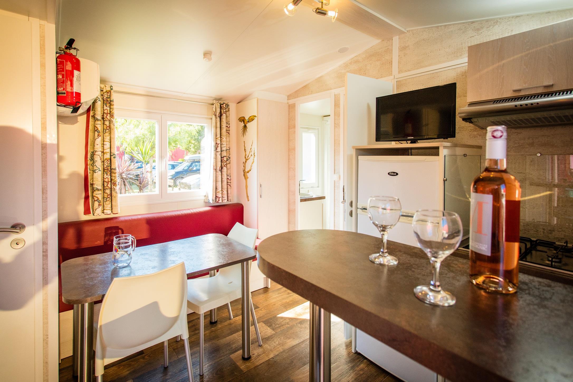 Inventaire Général Superficies Superficie totale (en m²) : 32.6 Informations supplémentaires Hébergement fumeur : non Accès handicapé : non Ancienneté Année du locatif : : 2014 Animaux Chien non accepté Chat non accepté Animaux non acceptés Chambres & Couchages Chambre(s) séparée(s) : 2 Chambres séparées N° 1 Lit 2 personnes : 1 Dimensions : 140 x 190 Chambres séparées N° 2 Lit 1 personne : 2 Dimensions : 80 x 190 Type de lit Gigogne Literie Literie adaptée au nombre de personnes Lits faits à l'arrivée en supplément Oreillers : fourni Traversins : non fourni Couvertures : fourni Couettes : non fourni Protège-matelas Enfant / Bébé Lit parapluie : 1 sur demande Cuisine & Sanitaires Cuisine Cuisine : 1 dans séjour équipée vaisselle/couverts adaptés au nombre de personnes Equipements de cuisine Evier : 1 Réfrigérateur / Congélateur : 1 Plaques de cuisson : 4 feux : 1 Micro-onde : 1 Cafetière électrique : 1 Presse fruits : 1 Vaisselle Assiettes plates : 6 Assiettes à dessert : 6 Assiettes creuses : 6 Couteaux : 8 Couteau cuisine : 1 Couteau économe : 1 Couteaux à pain : 1 Fourchettes : 8 Cuillères à soupe : 8 Petites cuillères : 8 Grandes cuillères : 1 Spatule en bois : 1 Range couvert : 1 Bols : 6 Tasses à café / soucoupes : 6 Verres : 10 Louche : 1 Ouvre boîte : 1 Tire-bouchon décapsuleur : 1 Couvert à salade : 1 Ciseaux : 1 Dessous de plat : 1 Plat : 2 Plat micro-ondes : 1 Ecumoire : 1 Essoreuse à salade : 1 Passoire : 1 Planche à découper : 1 Pichet : 2 Saladiers : 2 Casseroles : 3 Couvercle : 1 Poêles : 2 Faitout inox : 1 Bassine : 1 Corbeille à pain : 1 Sanitaires Salle(s) de bain : 1 Douche Lavabo Sèche cheveux WC : 1 séparé de la salle de bain Linge de bains : non fourni Nettoyage Etendoir Tri sélectif des déchets Pelle Balai Balai brosse Balayette Seau Serpillère Poubelle Brosse WC Cendrier Nettoyage des locations en supplément Equipement intérieur Installation thermique Climatisation Equipement multimédia Télévision gratuit Wi-fi gratuit couverture partielle Chaînes TV françaises Equipement extérieur Terrasse : 1 semi-couverte Table de jardin Chaises de jardin Chaise longue Barbecue autorisé gaz non électrique collectif non fourni Sécurité & parking Sécurité Extincteur Détecteur de fumée Parking Parking voiture sur emplacement à proximité public Infos pré et post réservation Caution locative Montant : 300€ Moyen de paiement Carte bancaire Espèces Petit-déjeuner : en supplément Charges Eau incluses Electricité incluses Gaz incluses Chauffage incluses
