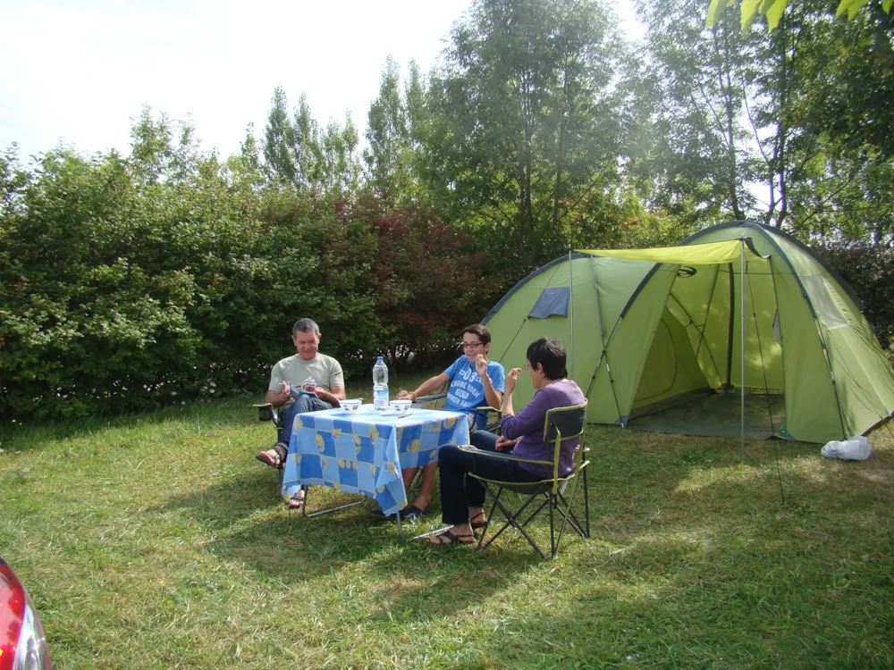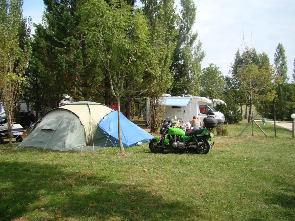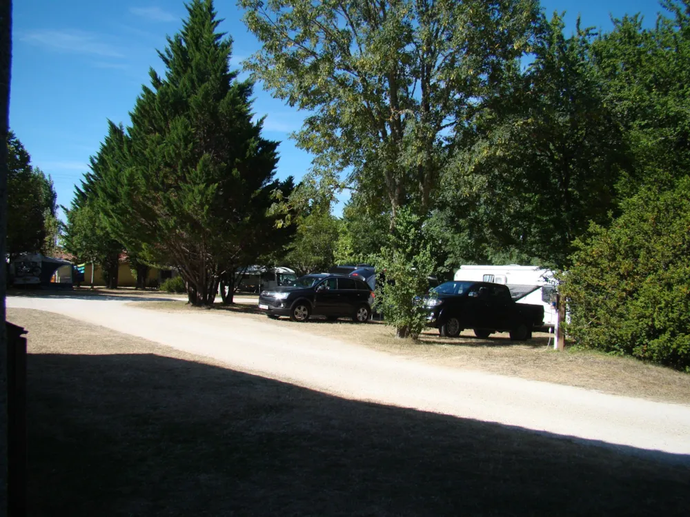 Emplacements de 100m² environ enherbés, avec ombrage partiel où plus. Accés facile pour caravanes et camping-cars.