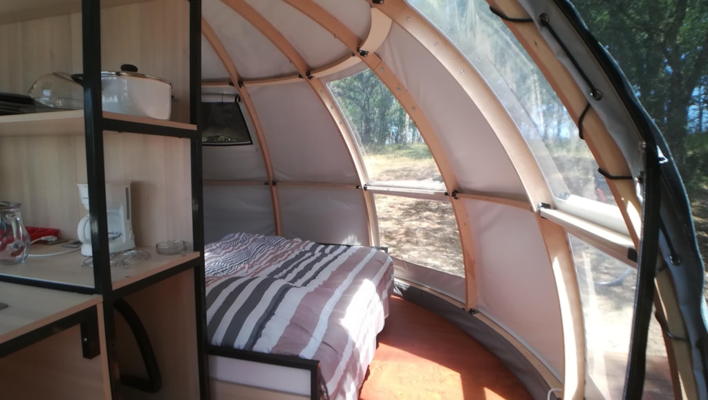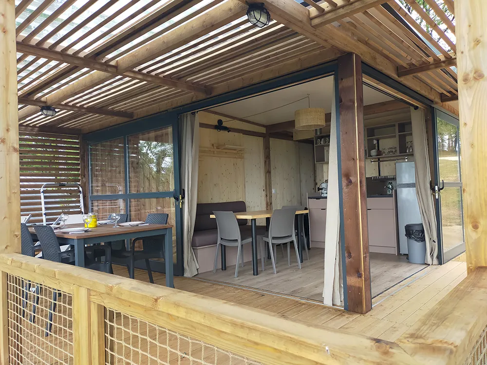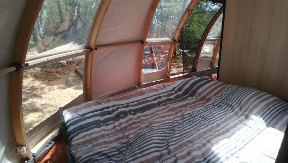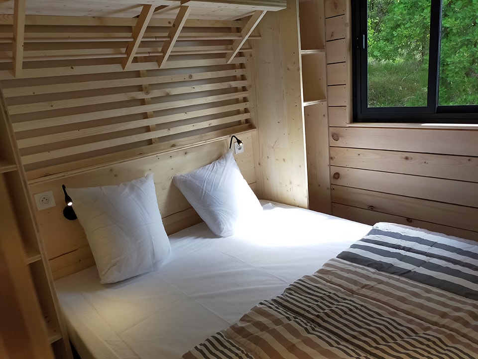 EIN VERRÜCKTER CHARME, EINE KOMFORTABLE KABINE AUF PILOTIS, MIT EINEM UNEINNEHMBAREN BLICK ÜBER DIE LUXURIÖSE NATUR. IDEAL FÜR EIN PAAR.