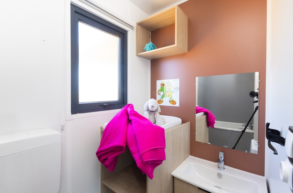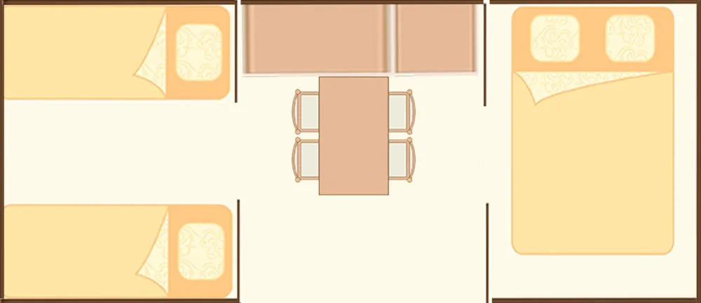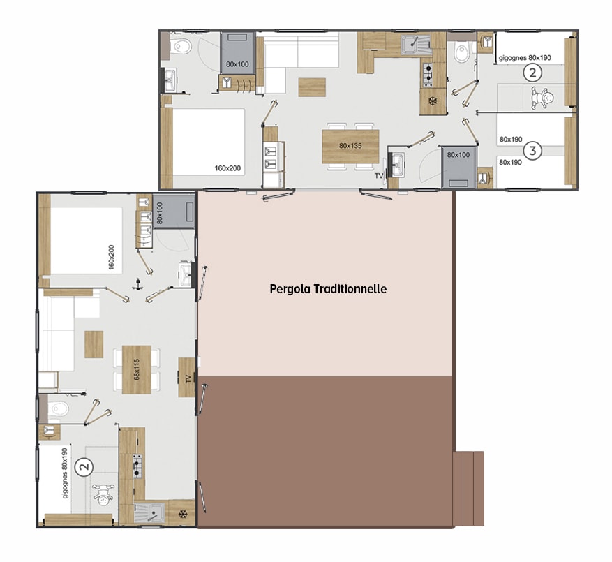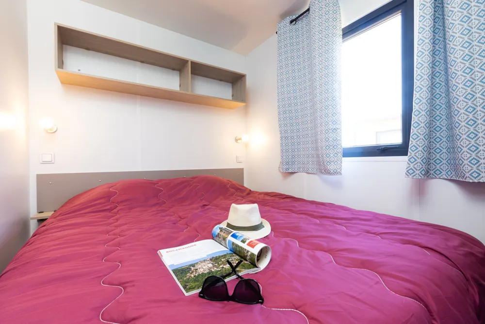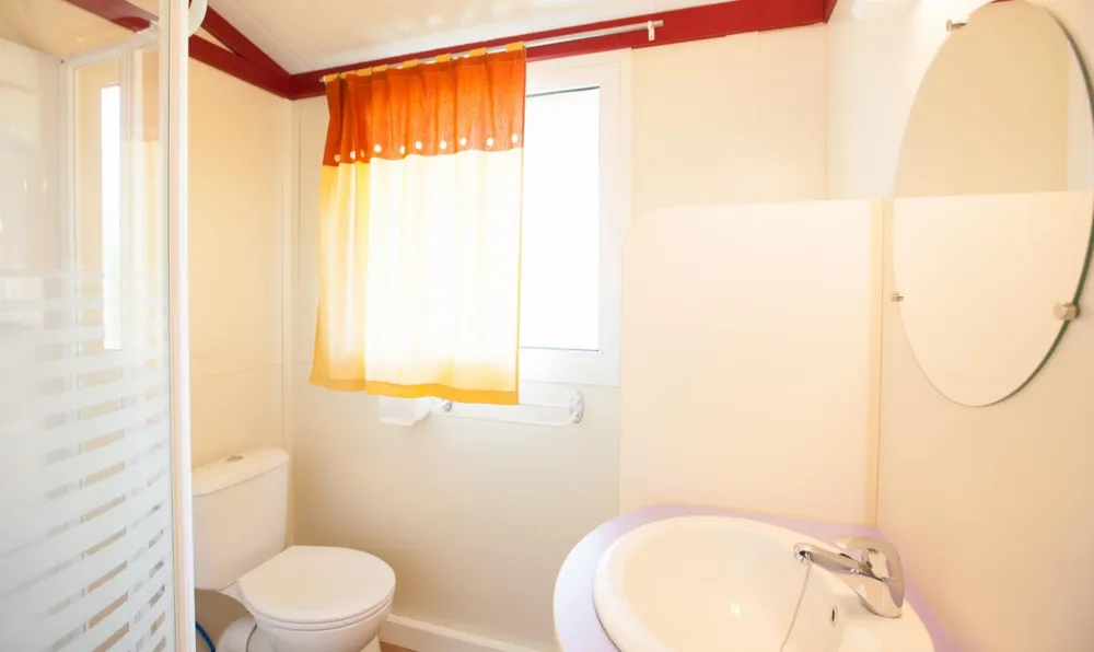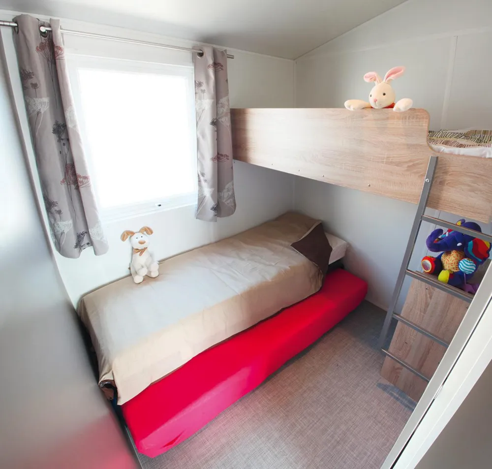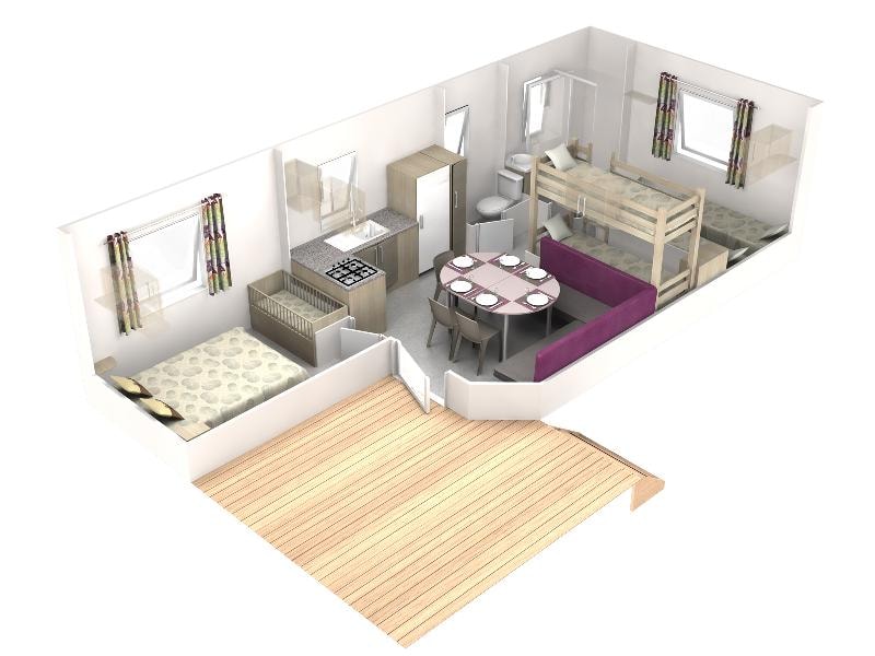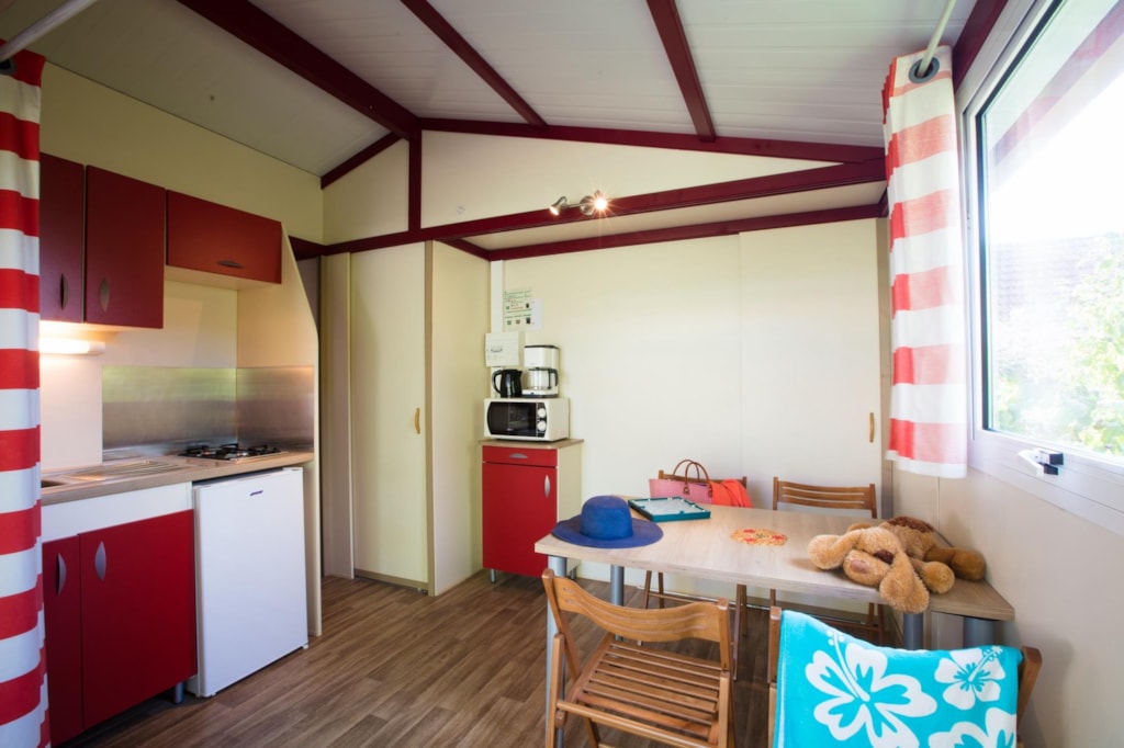 CHALET LIMARGUE : 2 Adults + 2 Childrens (maximum 12 years) PERS LIVING SURFACE 215 sq.ft + terrace 108 sq.ft 2 bedrooms : one with 1 double bed and one with2 bunk bed. Cupboard with wardrobe and bedside table. 4 pillows and 3 blankets. Kitchen 4 rings. Fridge and cupboard wxith tableware supplied for 4 people. Micro-wave oven. Electric coffee-maker. Electric heating. Showet washbasin and toilets together. Living room area with table and 2 chairs. outside with a covered terrace, garden table and 4 chairs. WITHOUT RADIATOR NOR HEATING. Clothes airer.
