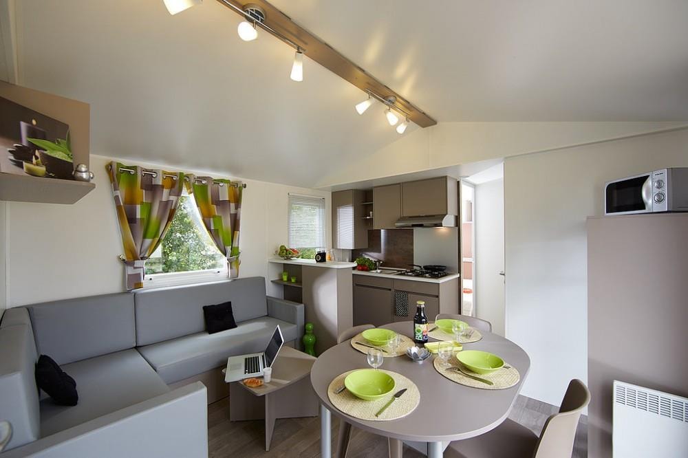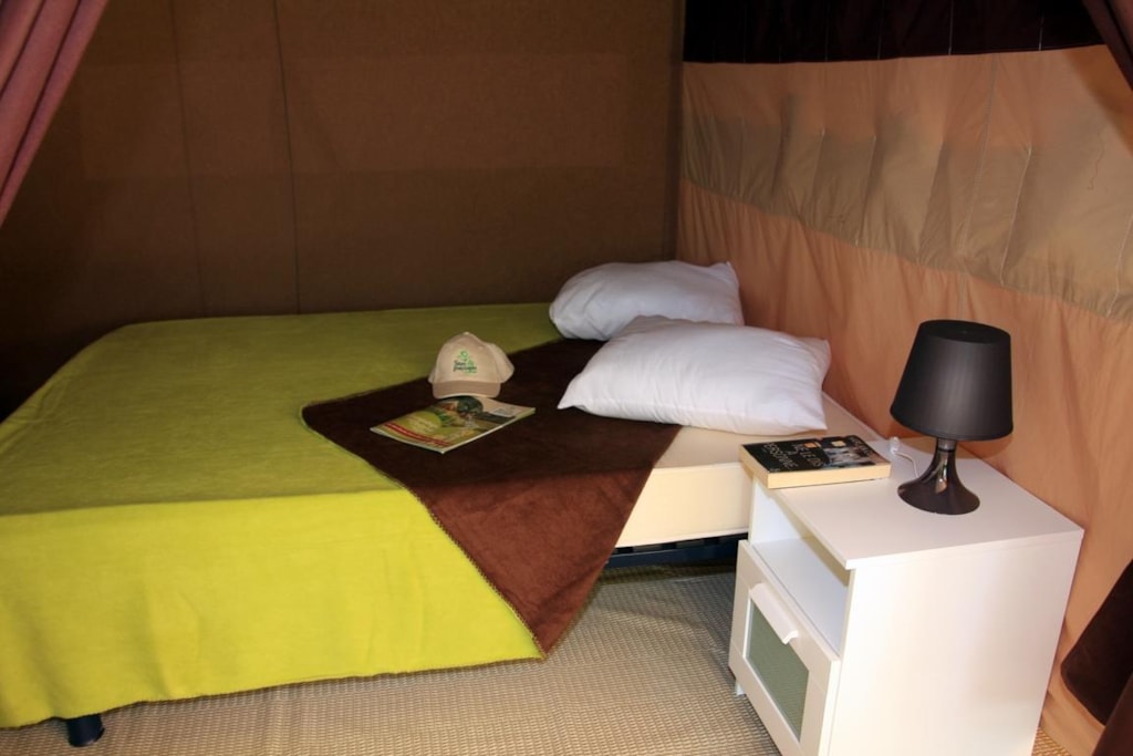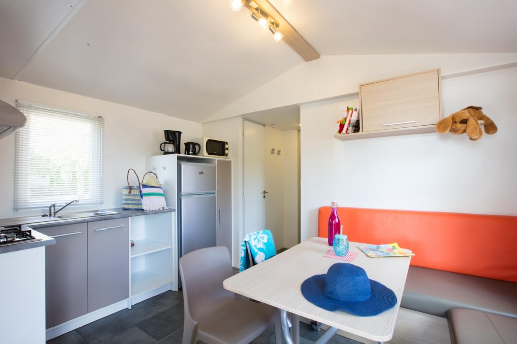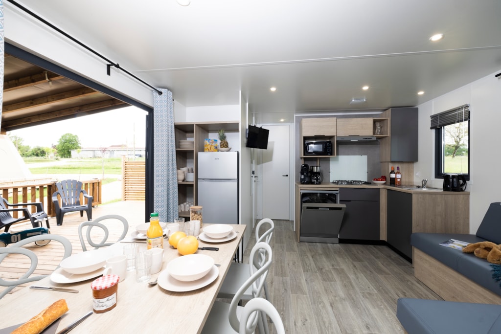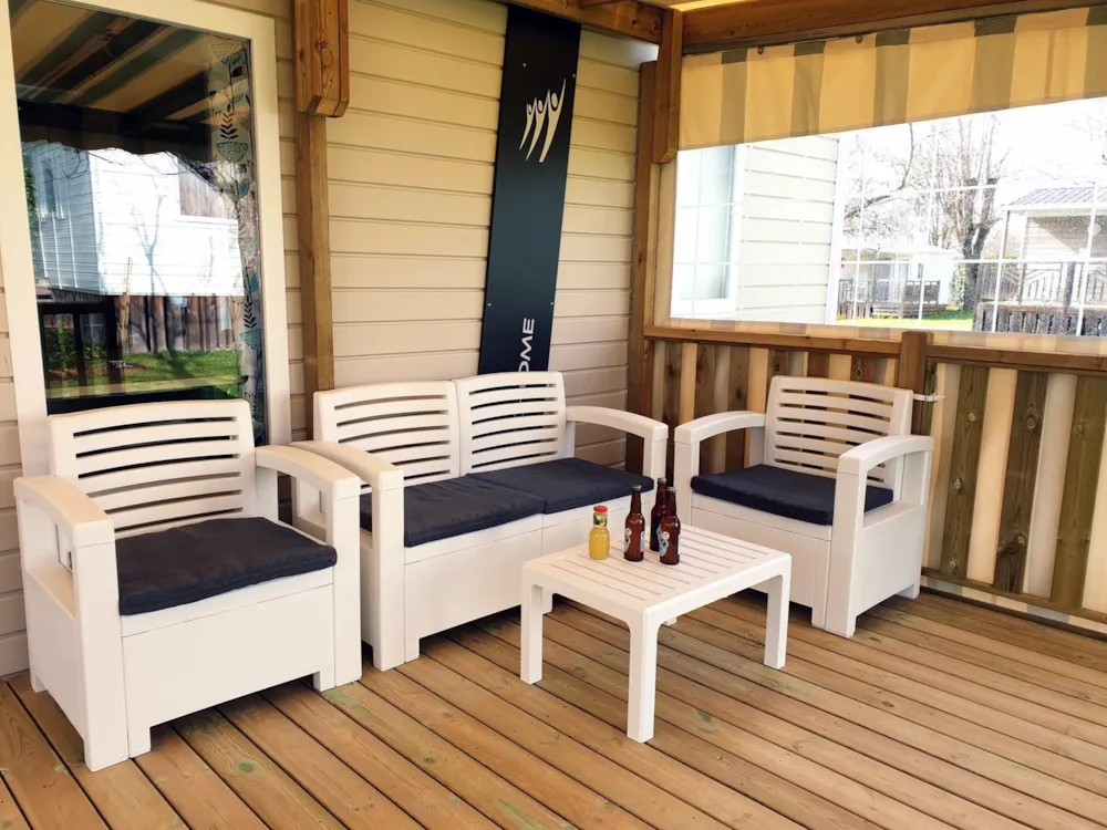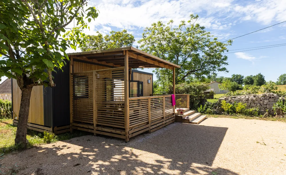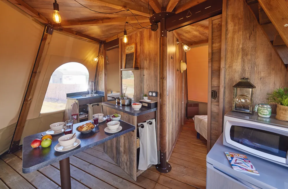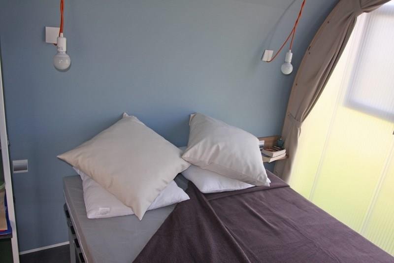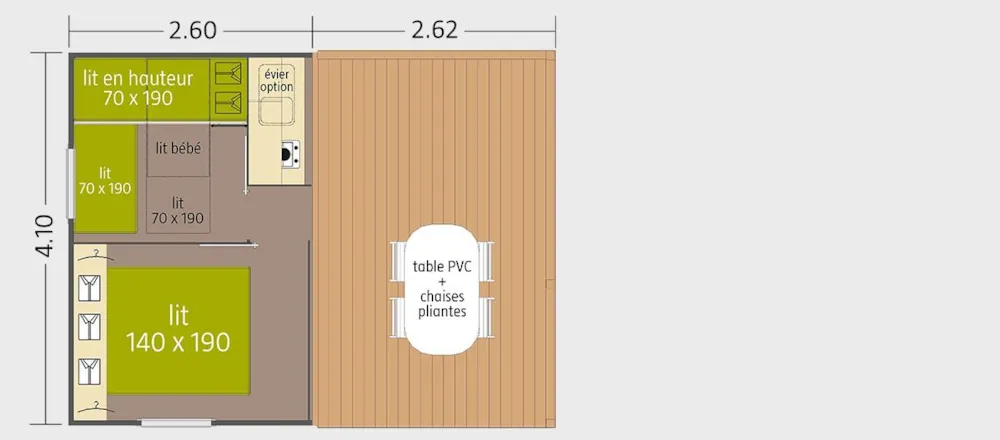 Coco Sweet Quatro : Innenfläche: 17 M ² + die gedeckte Terrasse Zwischen Originalität und die ist glamping, Zelt und Mobil-Heim, Komfort und Zelten unsere Nachricht wird KOKOSNUß SWEET Ihnen mit ihrer Struktur Halb-Wald(Holz) Halb-Stoff(Gemälde) sicher verführen. Suchen Sie eine ungewöhnliche Unterbringung für ihre Ferien, die Einfachheit, Natur und Komfort verbinden? KOKOSNUß SWEET ist für Sie gemacht! Sie werden drinnen den ganzen Komfort eines Mobil-Heimes finden: einerseits, 1 Zimmer mit einem Doppelbett 140, von anderer Seite, einem Salon mit 2 Schlafcouchs in den 2 Betten 70 (Drehpfannen, Kopfkissen, Unterlagen, die geliefert sind). Und in der Mitte die Kochnische mit 1 Tisch, 4 Hockern, Kühlschrank, Kochmulde, Mikrofon Wellen, Kaffeekanne und das notwendige Geschirr für 4 Personen (weder ohne Wasser noch Sanitärbereich). Sie werden ebenfalls über eine Terrasse mit Vordach großes Format mit Gartenmöbeln verfügen.