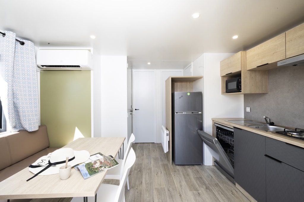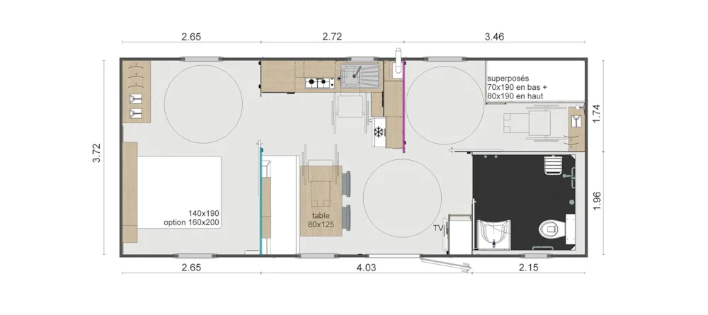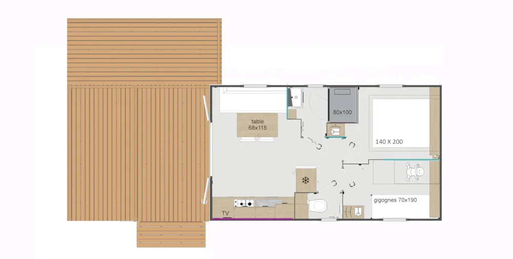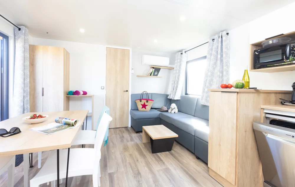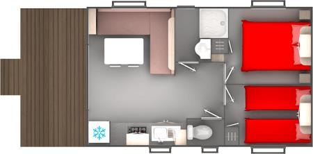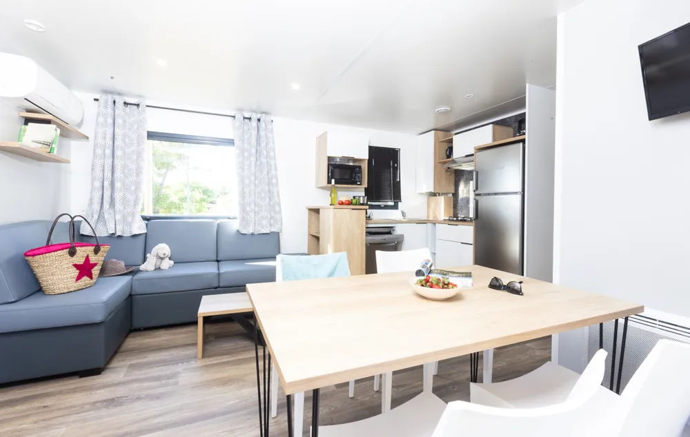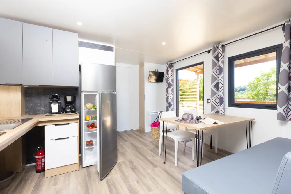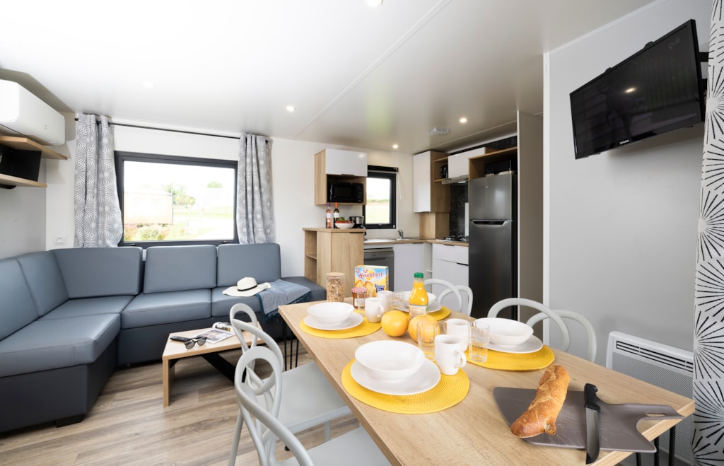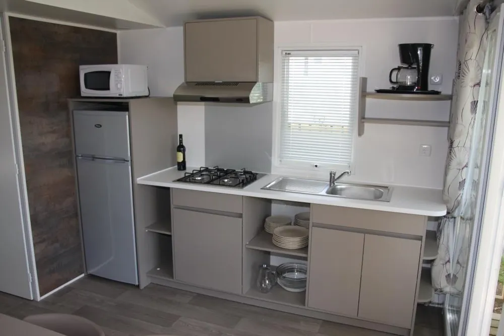 Coco Sweet Quatro : Innenfläche: 17 M ² + die gedeckte Terrasse Zwischen Originalität und die ist glamping, Zelt und Mobil-Heim, Komfort und Zelten unsere Nachricht wird KOKOSNUß SWEET Ihnen mit ihrer Struktur Halb-Wald(Holz) Halb-Stoff(Gemälde) sicher verführen. Suchen Sie eine ungewöhnliche Unterbringung für ihre Ferien, die Einfachheit, Natur und Komfort verbinden? KOKOSNUß SWEET ist für Sie gemacht! Sie werden drinnen den ganzen Komfort eines Mobil-Heimes finden: einerseits, 1 Zimmer mit einem Doppelbett 140, von anderer Seite, einem Salon mit 2 Schlafcouchs in den 2 Betten 70 (Drehpfannen, Kopfkissen, Unterlagen, die geliefert sind). Und in der Mitte die Kochnische mit 1 Tisch, 4 Hockern, Kühlschrank, Kochmulde, Mikrofon Wellen, Kaffeekanne und das notwendige Geschirr für 4 Personen (weder ohne Wasser noch Sanitärbereich). Sie werden ebenfalls über eine Terrasse mit Vordach großes Format mit Gartenmöbeln verfügen.