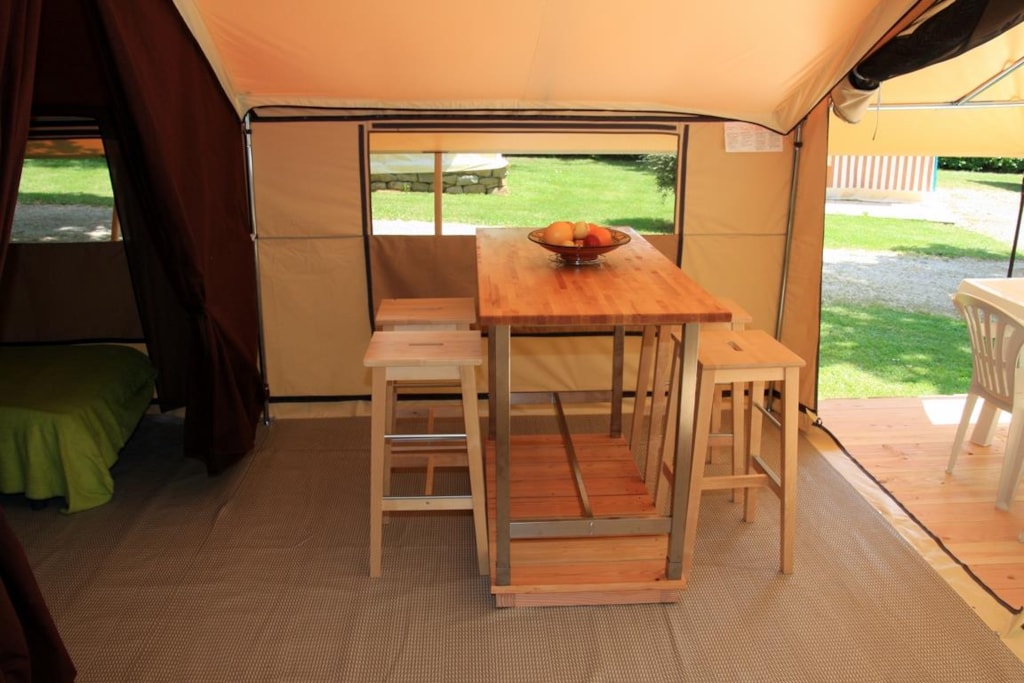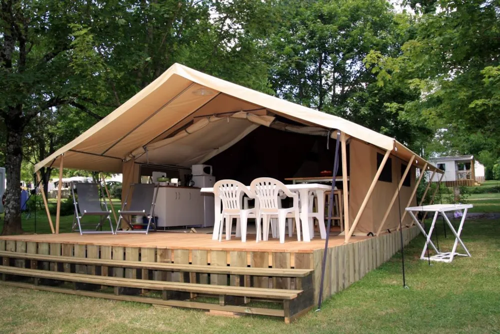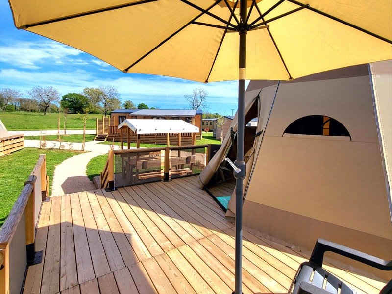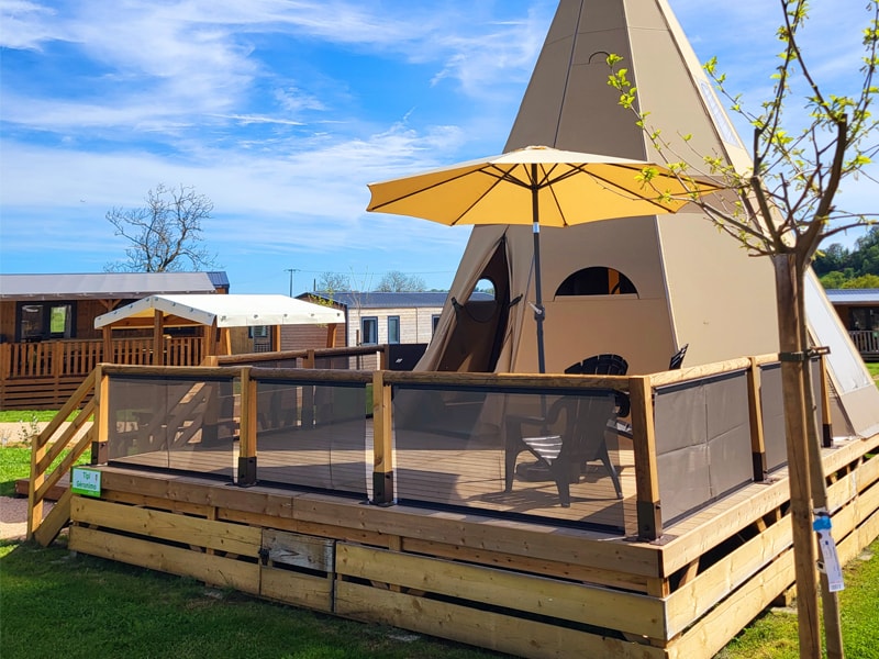 NEUHEIT 2024! 3 hochwertige Tipis (Cochise, Geronimo und Black Hawk) für einen ungewöhnlichen Urlaub im Tal der Dordogne. Mit seinen 2 Schlafzimmern (Elternschlafzimmer: Bett 140 x 190 cm, Kinderschlafzimmer: 2 Betten 80 x 190 cm), seiner ausgestatteten Küche (Spüle, Kochplatte, Kühlschrank, Mikrowelle) und seinem Badezimmer (Dusche 80x80 cm, Waschbecken, WC) bietet dieses Tipi Platz für bis zu 4 Personen. Ausgestattet mit einer ersten Terrasse auf Stelzen, auf der Sie die Sonne genießen können, und einer zweiten, versetzten Terrasse mit einem überdachten Holztisch und Bänken für gesellige Mahlzeiten. Das Tipi Cochise ermöglicht Kurzaufenthalte (2 bis 6 Nächte) auch in der Hochsaison!