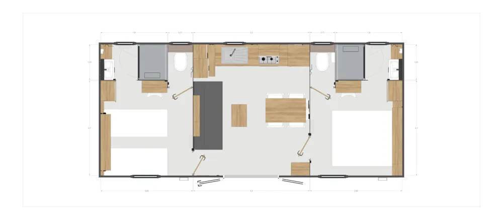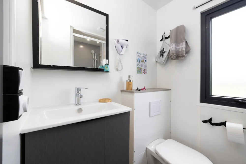 Geist Robinson für eine Rückkehr zur Natur! Es ist die Freiheit von Camping und Komfort des Wohnmobils. Hütte ohne Wasser oder sanitäre Einrichtungen. Ideal für 2 Erwachsene und 3 Kinder. 2 Schlafzimmer: 1 Schlafzimmer 1 Doppelbett 140X190 1 Schlafzimmer mit 2 Einzelbetten 70x190 und 1 Schlaf von 70x190 Vollständig möbliert und ausgestattet: Tisch, Stühle, Schränke, 2 Gasflammen , Kühlschrank mit Gefrierfach 212 l, Kaffeemaschine, Mikrowelle, Geschirr, Decken, Kissen, Matratze, Gartenmöbel , Sonnenschirm . Das Haus Robinson erfordert die Nutzung gemeinsamer Einrichtungen in der Nähe (Dusche, WC, Geschirrspüler) Verstärkte Isolierung - Heizkörper in den Zimmern.