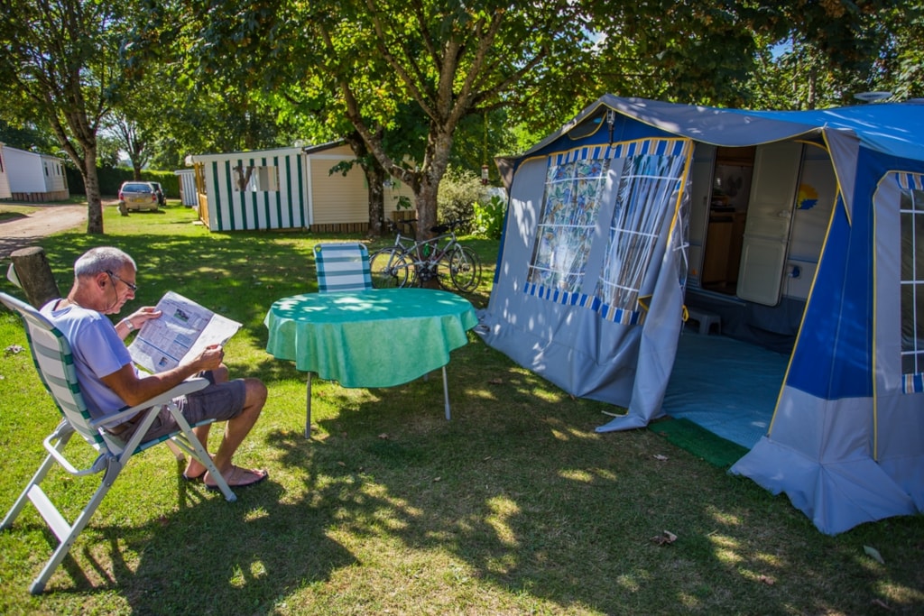 Stellplatz für Zelt, Wohnwagen oder Campingwagen für 2 Personen, 1 Auto - Strom 16 A (elektrischer Anschluss nur über europäischen Stecker). Die privaten Sanitäranlagen sind direkt auf dem Grundstück installiert und bieten Ihnen optimalen Komfort, darunter ein Badezimmer mit Dusche und Waschbecken, eine separate Toilette und ein weiteres Zimmer mit Waschbecken, Kühlschrank und Mikrowelle. Vermietung von Samstag bis Samstag im Juli/August. Zusätzliche Zelte oder Lauben sind ohne Aufpreis erlaubt. Wir können jedoch nicht für den Platzmangel auf der Website verantwortlich gemacht werden. Die Stellplätze sind ab 14:30 Uhr besetzt und werden vor 12:00 Uhr geräumt. Unsere Preise beinhalten den Zugang zum Schwimmbad. Die maximale Anzahl von Personen auf einem Spielfeld beträgt 6.