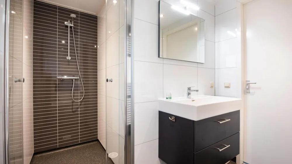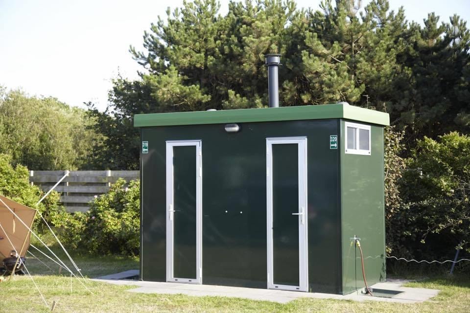 Kamperen met extra luxe! Niet meer de camping over naar het sanitair gebouw en sjouwen met uw spullen. Ervaar het gemakt van uw eigen douche, toilet en wastafel. Tevens eigen water-, riool-, CAI- en elektra- aansluiting aanwezig.