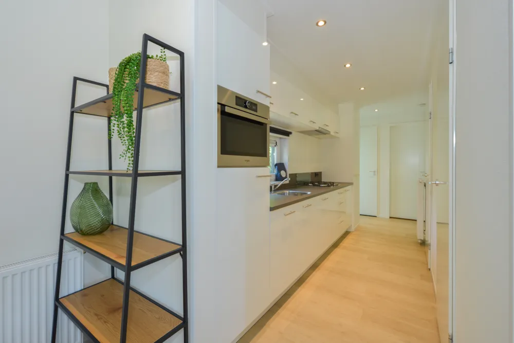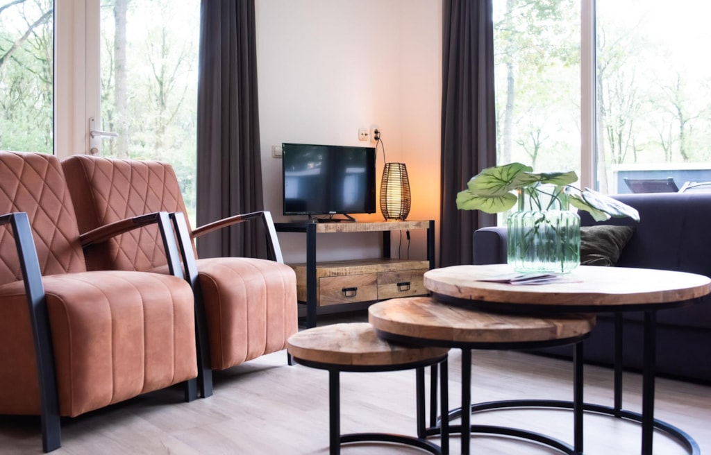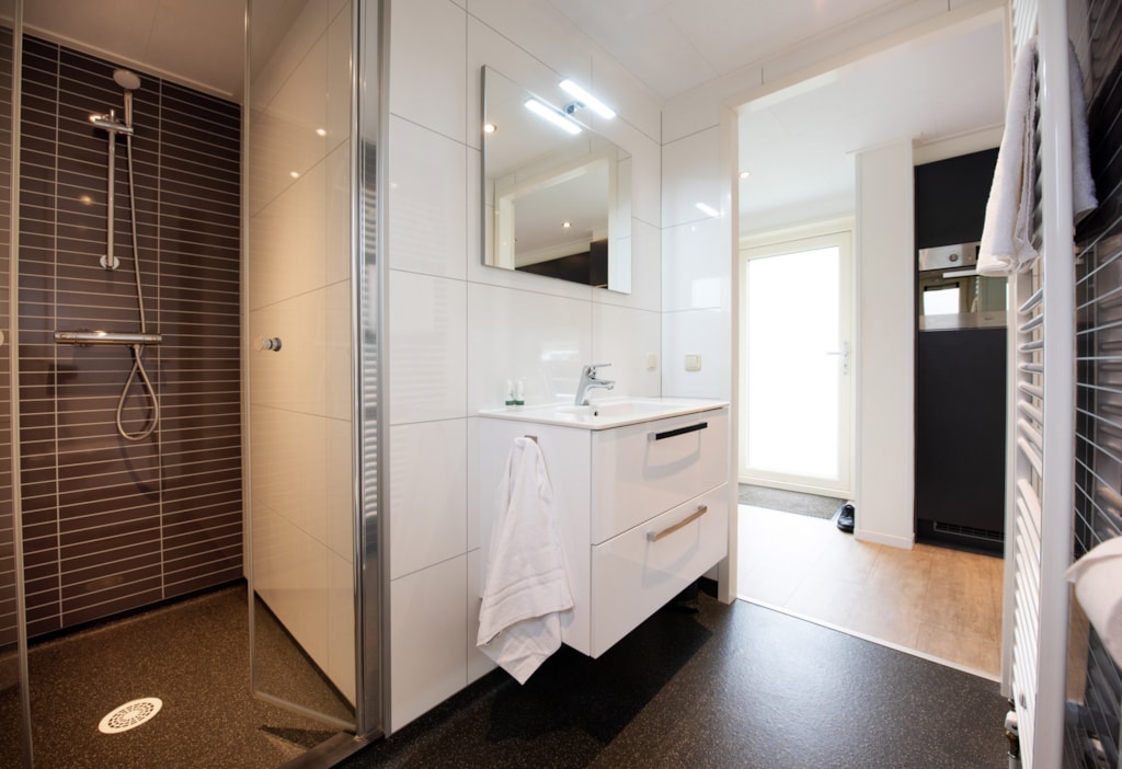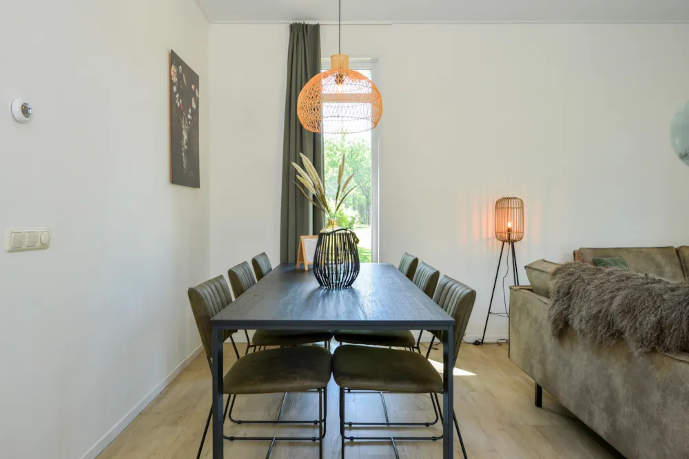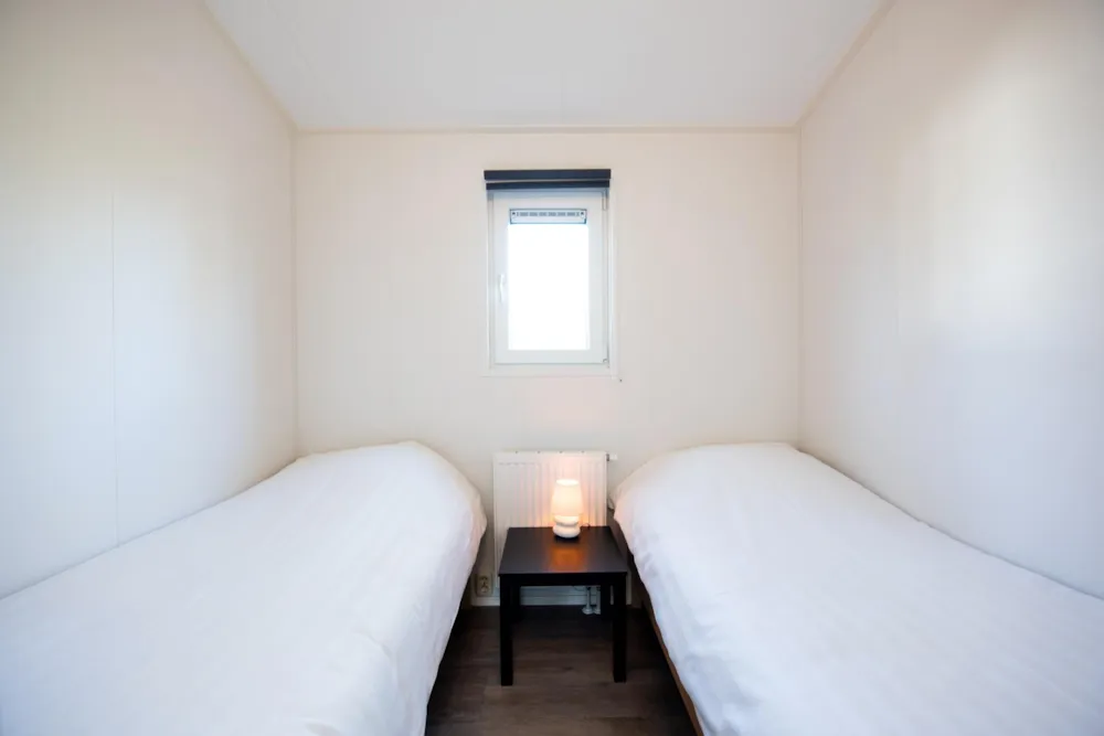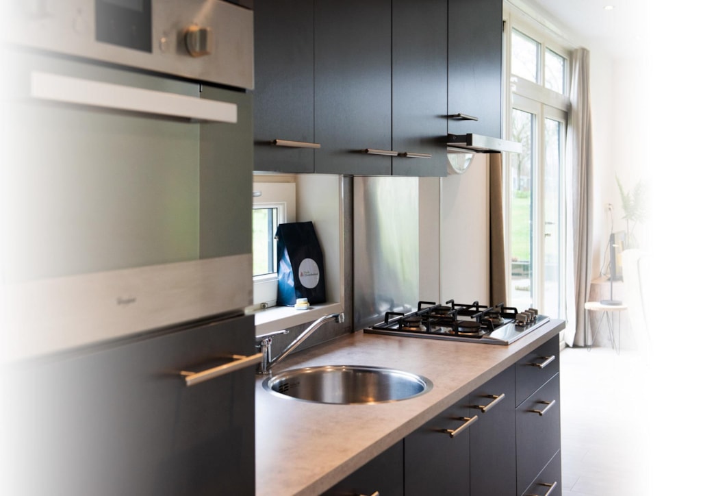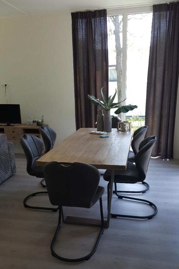 Deze vakantiewoning kent veel comfort met extra ruime woonkamer en open keuken. Door grote raampartijen voelt het ook binnen alsof u zich midden in de natuur bevindt. De keuken beschikt over vaatwasser, combimagnetron, waterkoker en filterkoffieapparaat. Twee slaapkamers zijn voorzien van eenpersoons boxsprings. Één slaapkamer is voorzien van een stapelbed. Dit stapelbed is 90 cm breed en voorzien van 20 cm hoge polyethermatrassen. Daarnaast heeft deze accommodatie naast een toilet in de badkamer ook nog een extra apart toilet.
