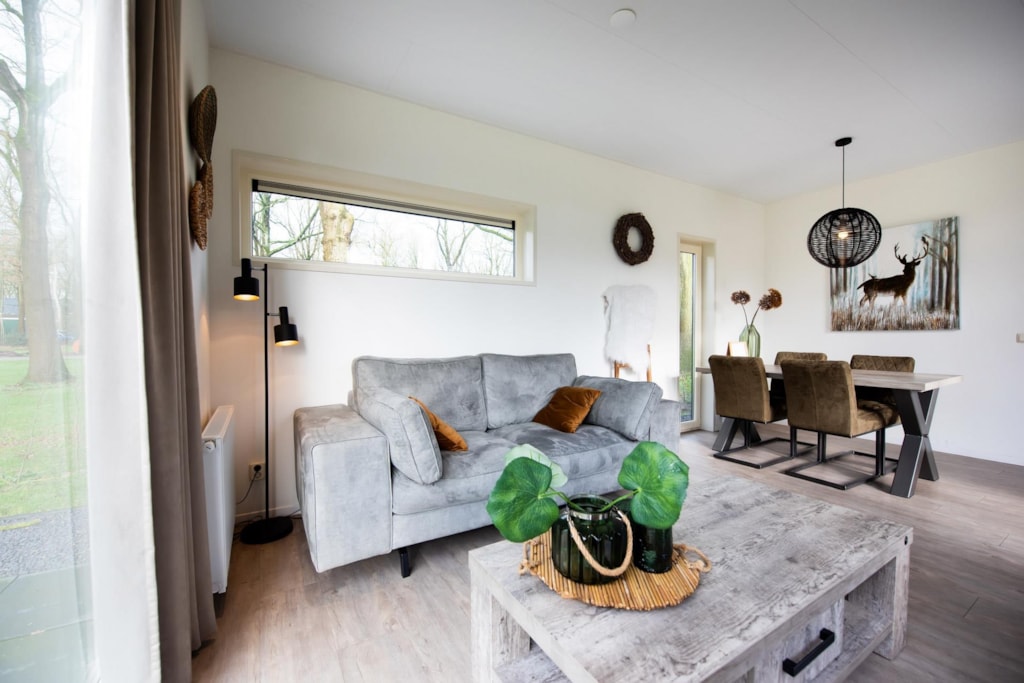 Das komfortable Ferienhaus ist sehr reichlich ausgestattet mit einem großzügigen Wohnzimmer und offener Küche, zwei Schlafzimmern und einem großzügigen Badezimmer. Die Ferienhäuser sind komplett neu und daher mit moderner Einrichtung und allem Komfort ausgestattet. Durch die großen Fenster hat man das Gefühl mitten in der Natur zu sein. So genießen Sie einen angenehmen und komfortablen Aufenthalt im Park Drentheland am Rande des Nationalparks Drents-Friese Wold.