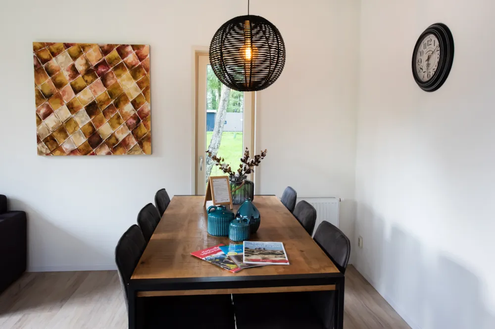 Deze vakantiewoning kent veel comfort met ruime woonkamer en open keuken. Door grote raampartijen voelt het ook binnen alsof u zich midden in de natuur bevindt. De keuken beschikt over vaatwasser, combimagnetron, waterkoker en filterkoffieapparaat. Twee slaapkamers zijn voorzien van eenpersoons boxsprings. Één slaapkamer is voorzien van een stapelbed.