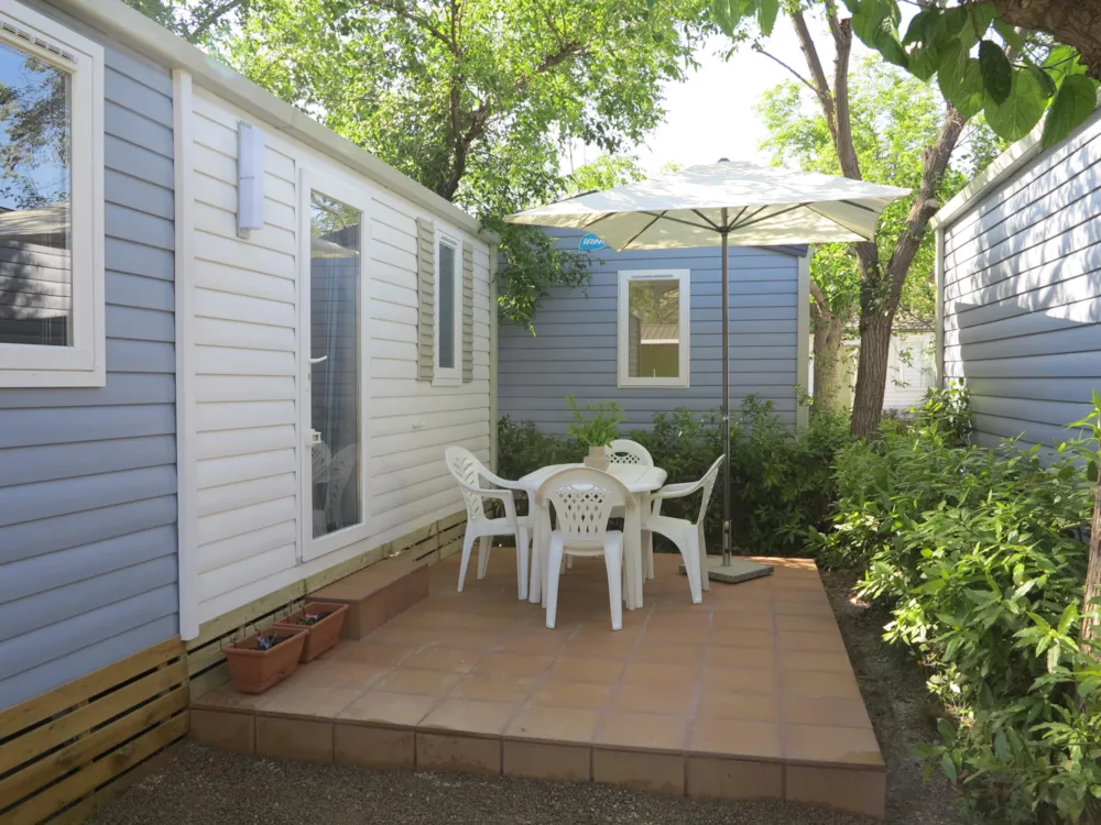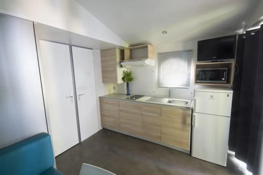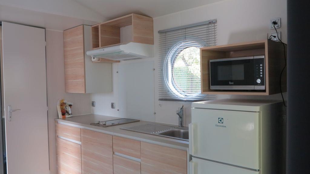 Die Art A, es ist ein Mobil Home O'Hara, mit doppelter Isoliertheit, sehr bequem und zweckmäßig, mit Fähigkeit für 2 Personen. Er besteht aus einem Wohnzimmer mit Essbereich, einer Schlafcouch für eine Person und einem Doppelbett, separatem Bad mit WC, Waschbecken und Dusche mit Warmwasser, einer Küche mit Geschirr, Spüle, Herd und Kühlschrank, überdachter Terrasse mit Außenterrasse, Sonnenterrasse und Parkplatz für ein Auto. Mit TV, Mikrowelle, Gartenmöbeln und Sonnenschirm. Inklusive Wäscheausstattung und wöchentlichem Wechsel. Mobil Home A, 2/3 Pers. - 16 m2.