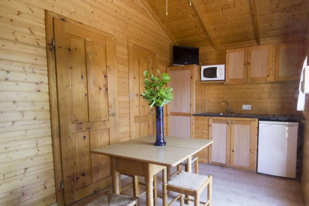 Der Holzbungalow B2 ist vollständig in der Natur integriert, sehr gemütlich und komfortabel, mit einer Kapazität von 2-4 Personen. Er besteht aus einem Wohnzimmer mit Essbereich und einer Schlafcouch für zwei Personen, einem Schlafzimmer mit Doppelbett; Bad mit WC, Waschbecken und Dusche mit Warmwasser, einer Küche mit Geschirr, Spüle, Herd und Kühlschrank, überdachter Terrasse mit Außenterrasse, Sonnenterrasse und Parkplatz für ein Auto. Mit TV, Telefon, Mikrowelle, Gartenmöbeln. Inklusive Bettwäsche und Handtücher mit wöchentlichem Wechsel. Bungalow B2, 2/4 Pers. - 24 m2.