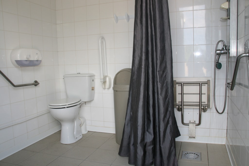They are located in the back corridors. They are very shaded and surrounded by cypress.