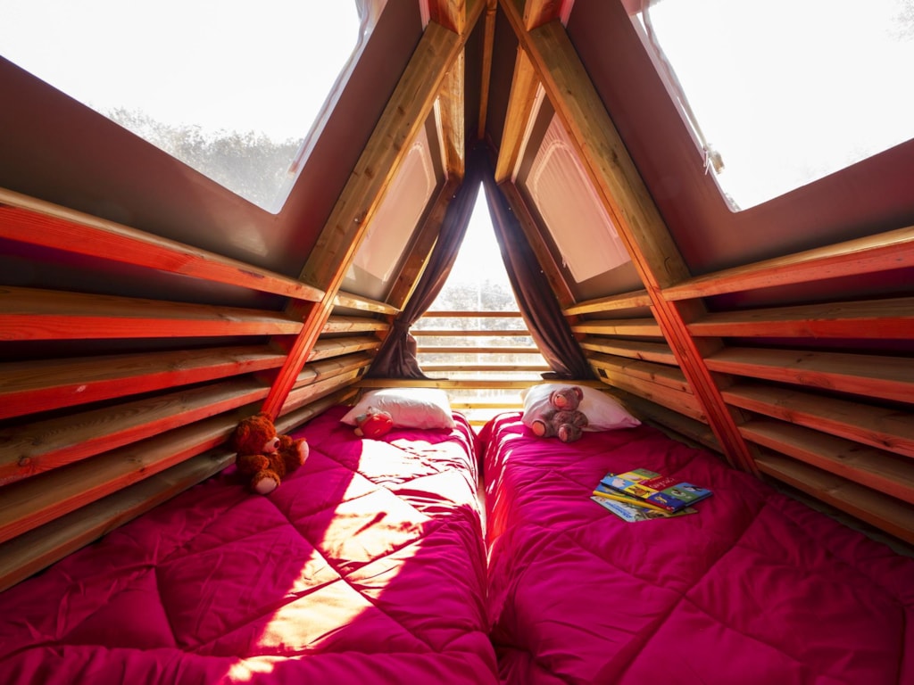 Ein luxuriöses, zweistöckiges Zelt mit zwei Schlafzimmern, einem Badezimmer, einer Küche und einem großen Wohnzimmer, das sich nach außen erstreckt. Die Küche ist voll ausgestattet (Kaffeemaschine, Wasserkocher, Toaster, Mikrowelle und Gasherd…). Das Badezimmer verfügt über Dusche, Waschbecken und WC. Draußen ist die Terrasse ausgestattet mit: 1 Tisch, 4 Stühle, 2 Liegestühle. Ideal für Paare mit Kindern. Der Raum im ersten Stock wird die Herzen der Kinder erfreuen! *Haustiere in der Unterkunfterlaubt : Nein *Moskitonetzefür Fenster : Ja