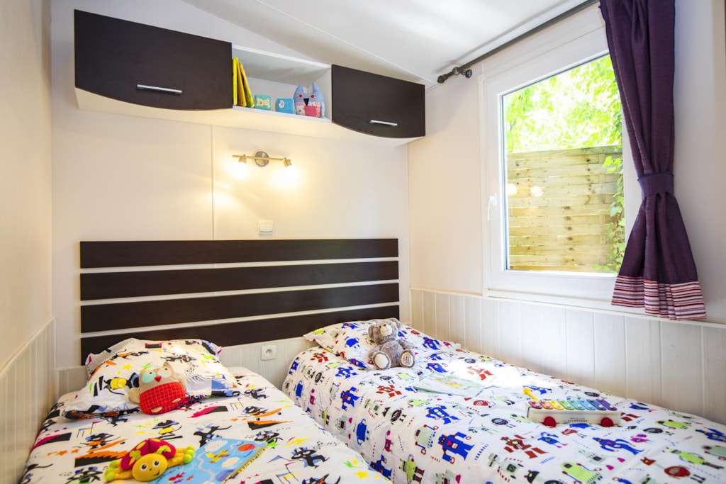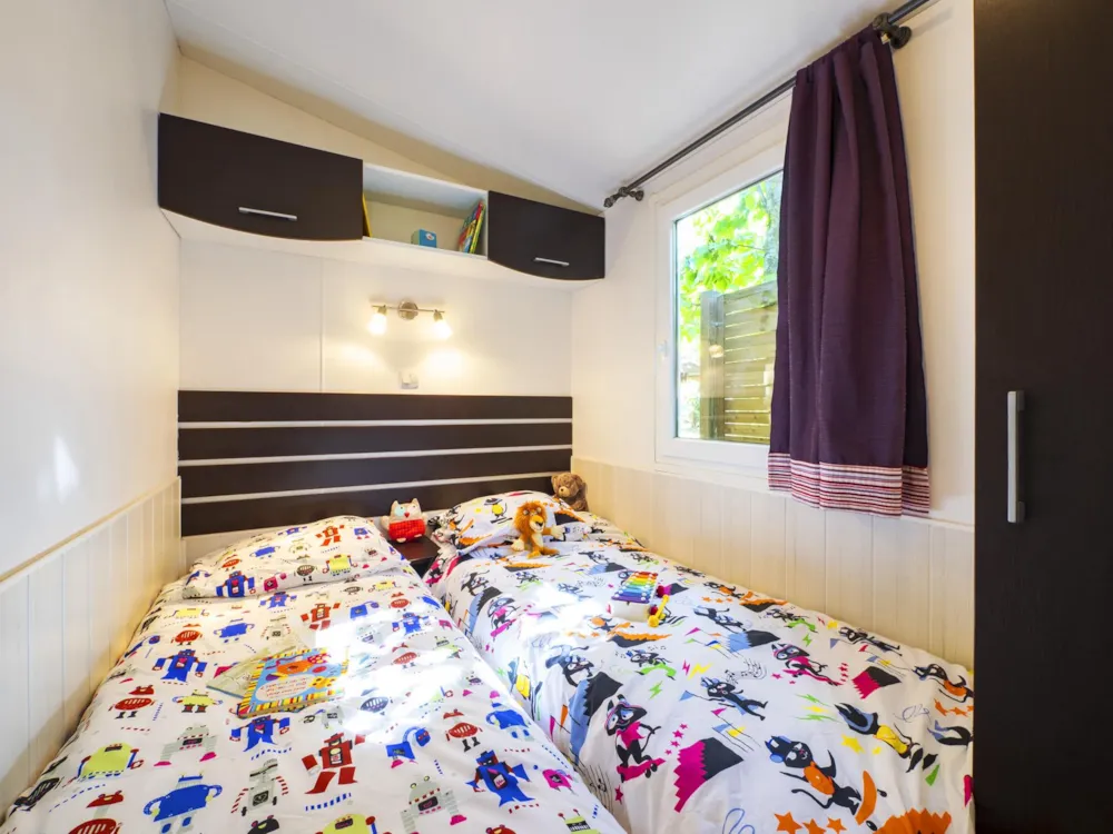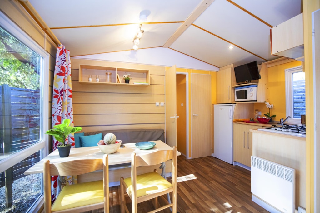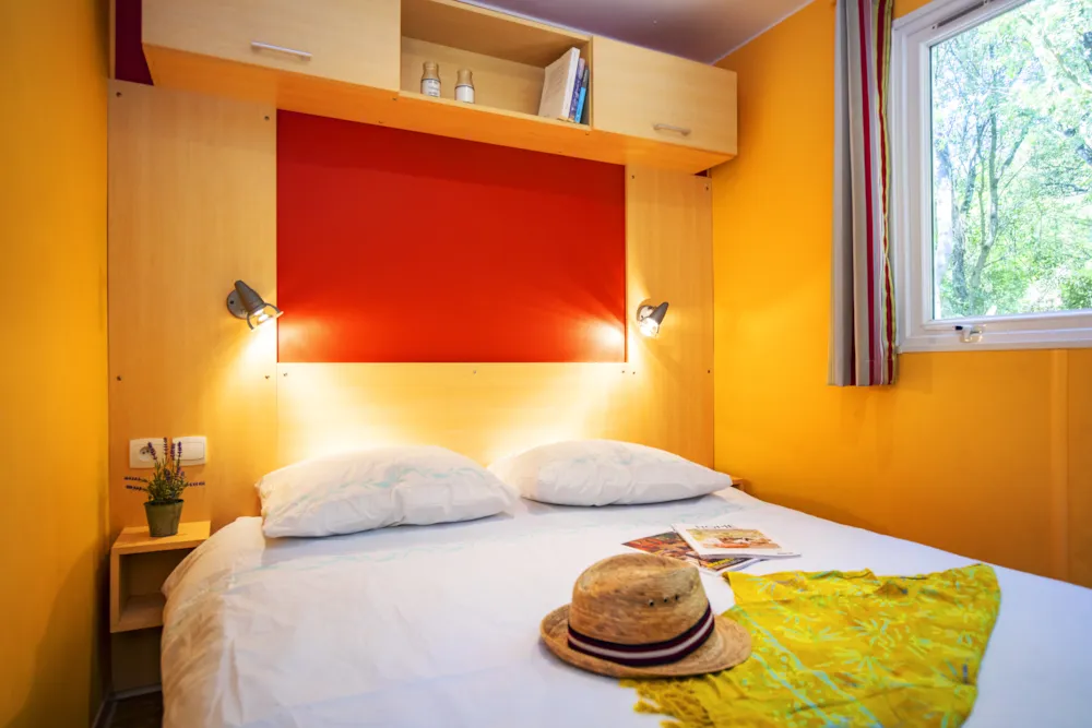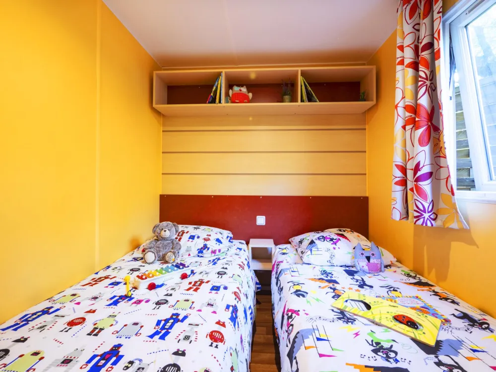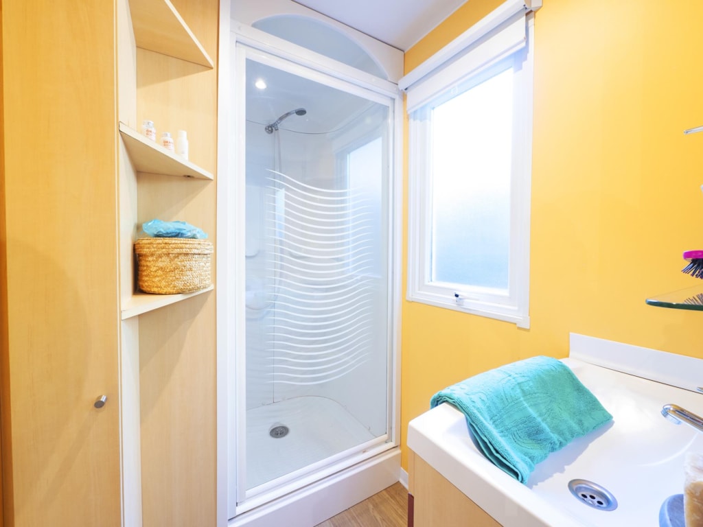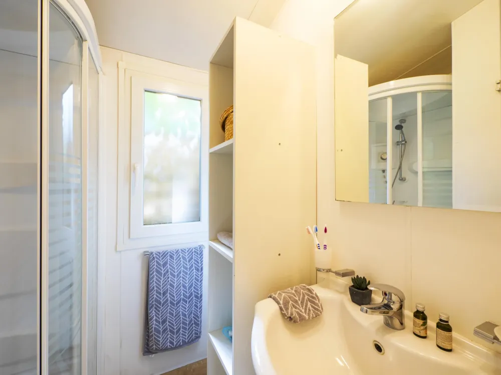 * Fläche: ab 32m² * Schlafzimmer 1: 140 x 190 Bett, Kleiderschrank, Safe. * Schlafzimmer 2: 2 Betten 80 x 190, Kleiderschrank. * Schlafzimmer 3: 2 Betten 80 x 190, Kleiderschrank. * Wohnzimmer: Bank, Tisch und Stühle, Heizung. * Küche: Kochfeld, Geschirr, Küchenutensilien, Spüle, Dunstabzugshaube, Kühl- / Gefrierschrank, Mikrowelle und elektrische Kaffeemaschine. * Duschraum: Dusche und Waschbecken. * Separates WC. * Bettdecken und Kissen werden gestellt. * Gartenmöbel, Sonnenliegen/Liegestühle und Wäscheleine. * Halbüberdachte Terrasse 12m².