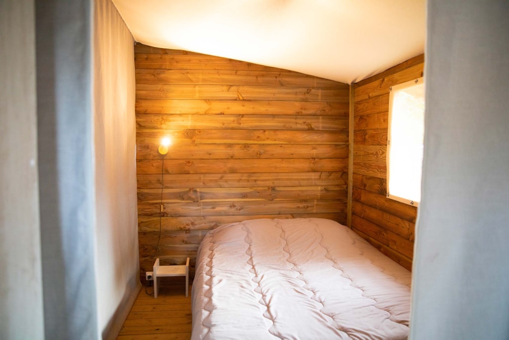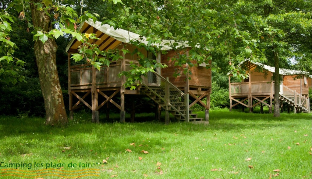 Wooden bivoic on stilts, with terrace on the ground, includes a bedroom with two single beds and electricity (possibility of bringing them together)