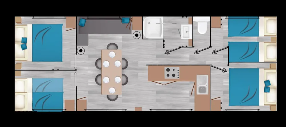 Mobilheim mit 4 Schlafzimmern/8 Personen,WLAN INKLUSIVE
