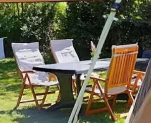 Unsere 2 Safarizelte befinden sich an einem schönen autofreien Naturplatz am Rande des Sees. Dieses Zelt ist für 4 Personen ausgestattet.