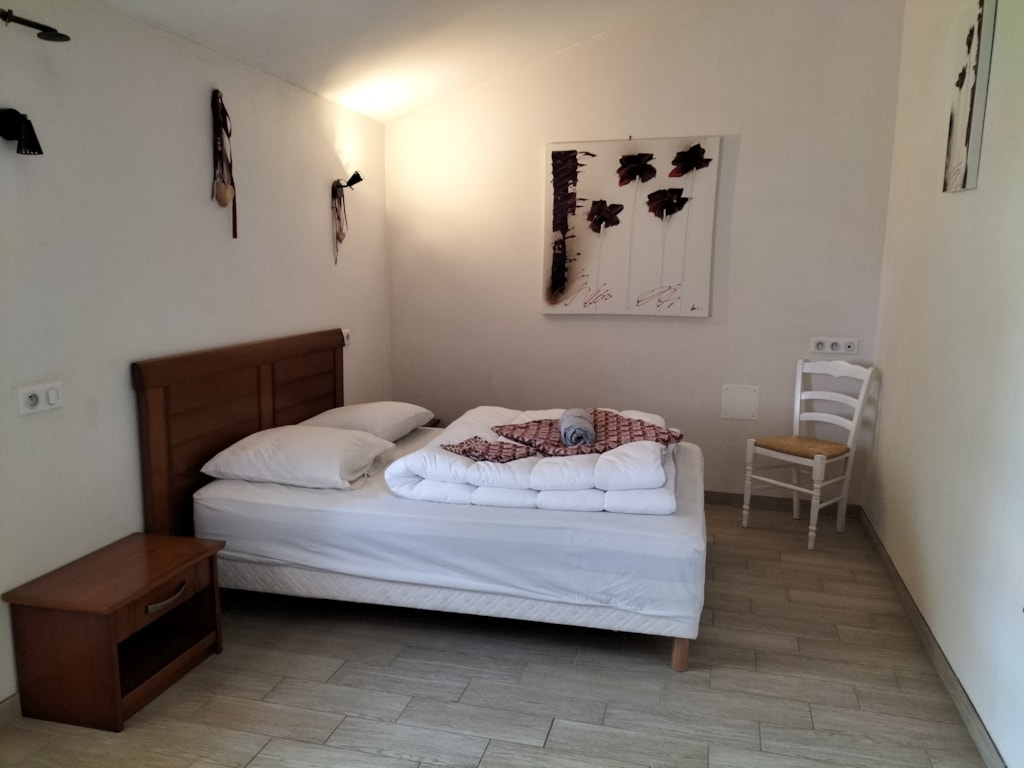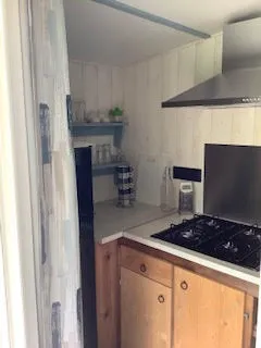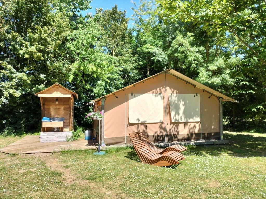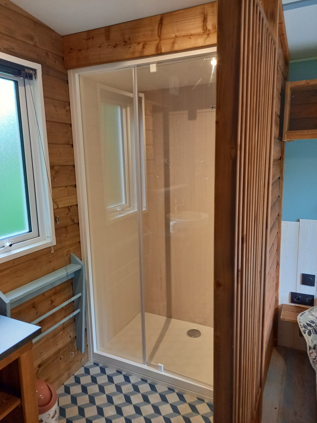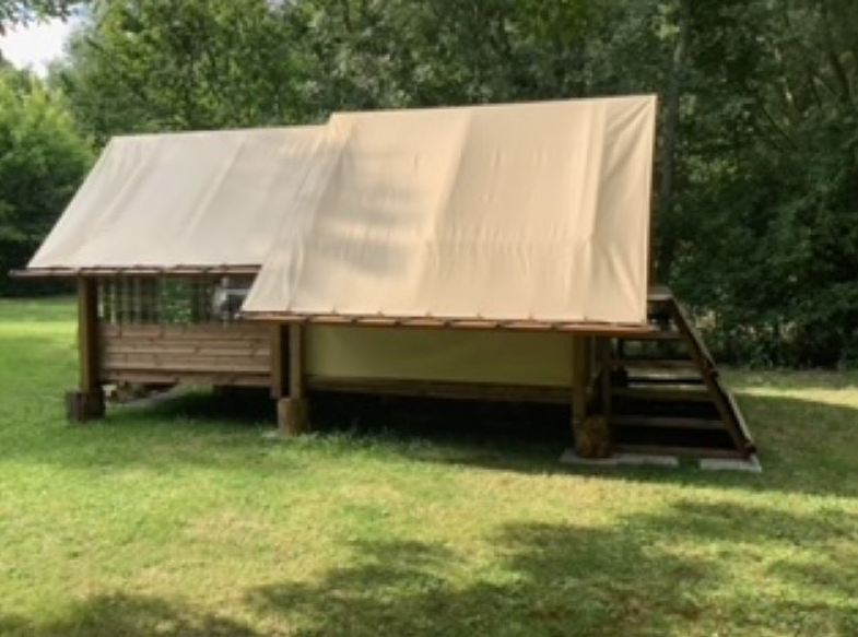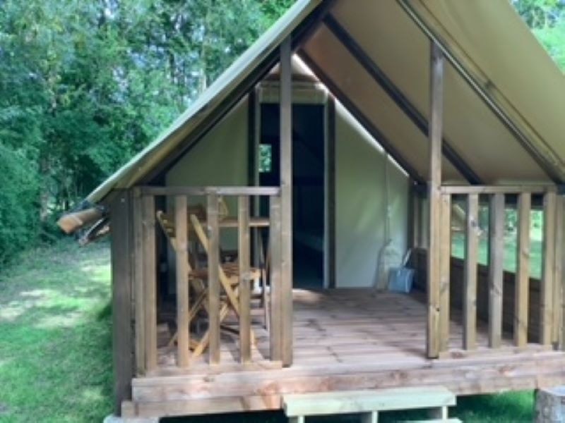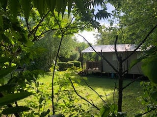 Chalet grand confort, neuf, entièrement équipé. Chaque chambre possède son propre cabinet de toilette avec lavabo et douche. Porte fenêtre chambre parentale donnant accès direct à la terrasse. Situé au sein d'un petit camping familial au plus proche de la nature sur un emplacement de 1 200 m² pouvant accueillir des campeurs sur le côté droit de cette partie de terrain. Calme assuré.