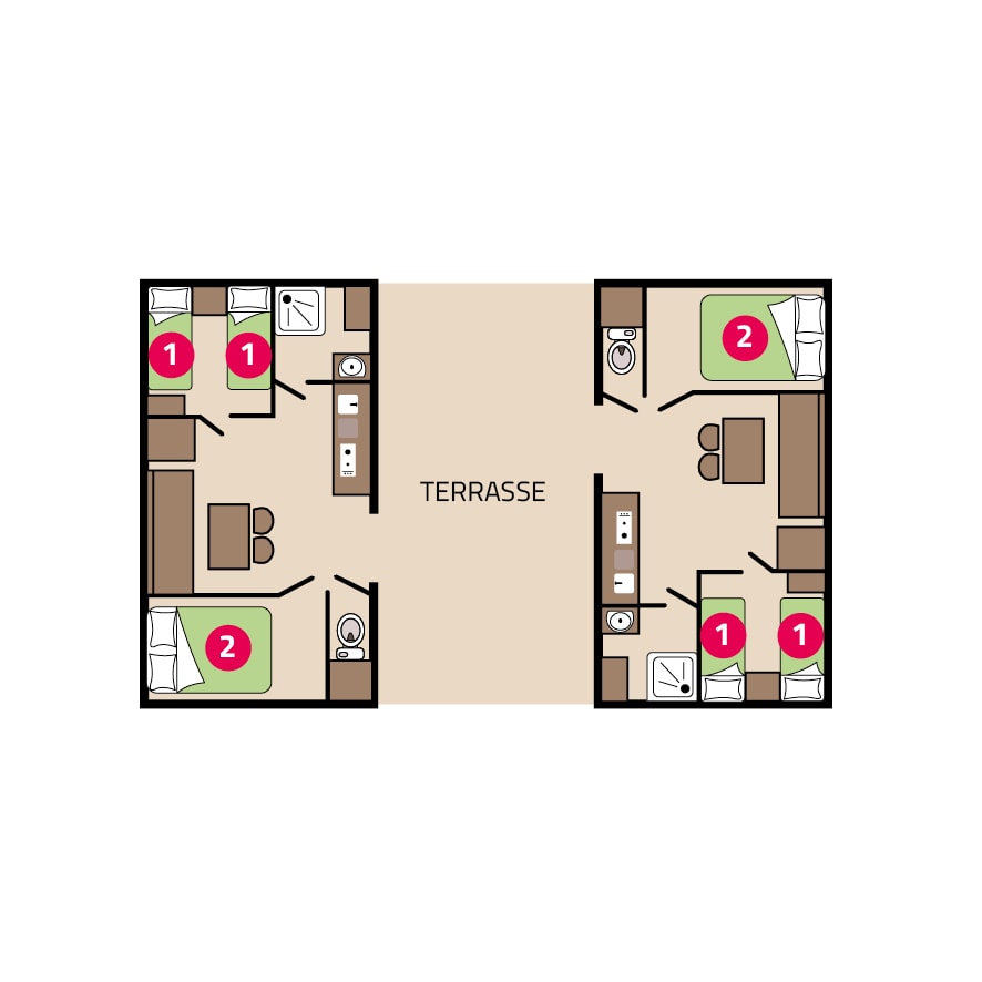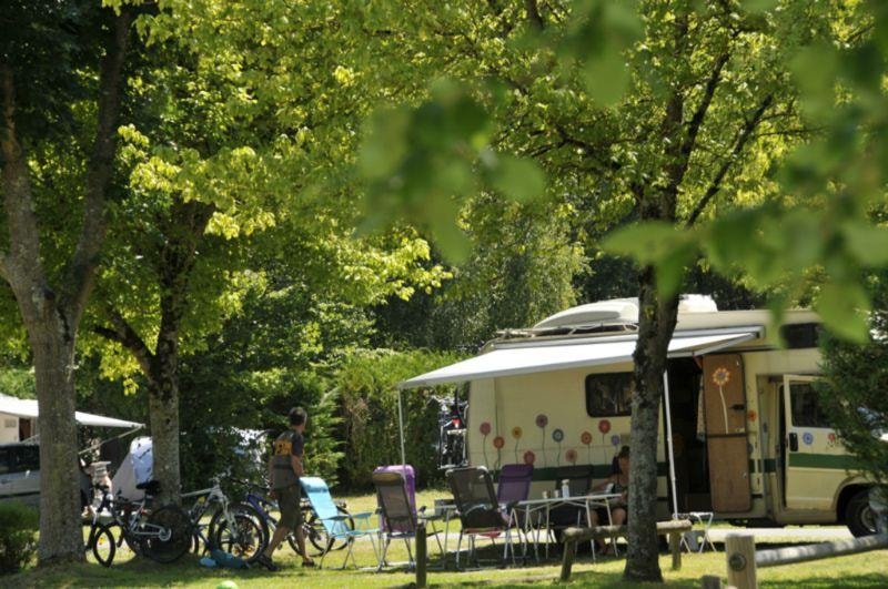 Der Stellplatz „Grand Confort“ umfasst den Stellplatz für 2 Personen + Fahrzeug + Strom + Wasser- und Abwasseranschluss.
