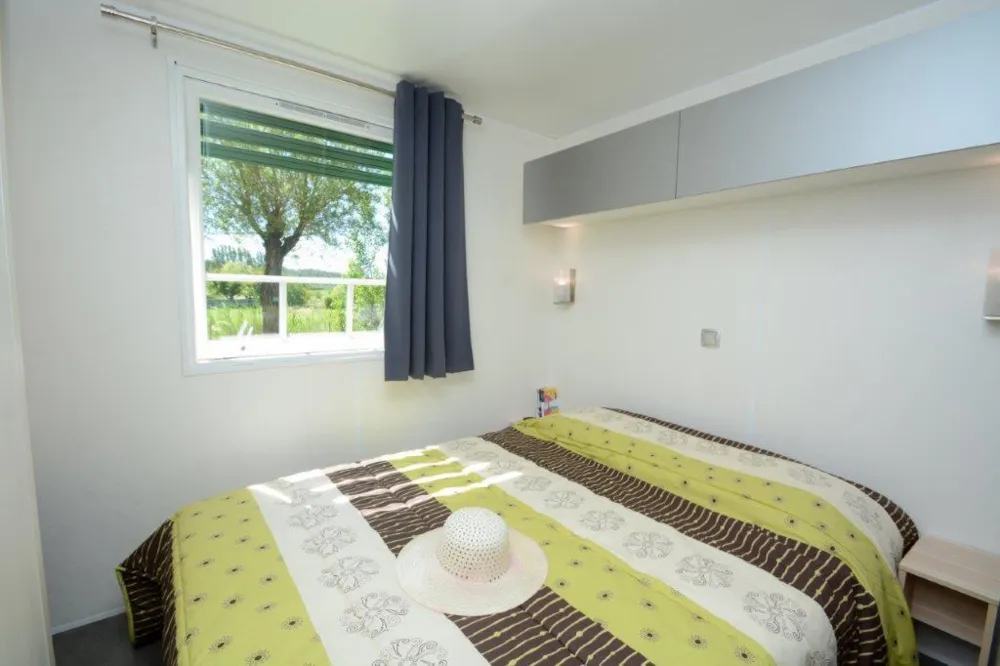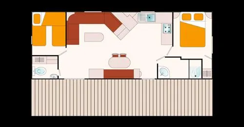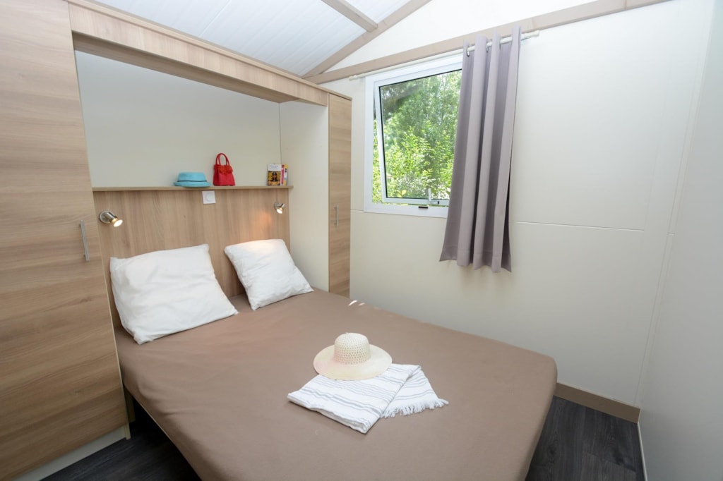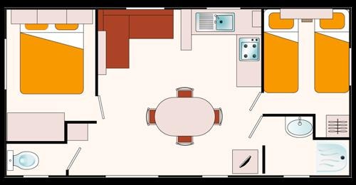 Vous cherchez un mobil home confortable à un prix abordable pour votre séjour en amoureux ? Optez pour ce type de mobil home qui offre dans ses 18m2 une chambre avec un lit double, une salle d'eau avec WC et une cuisine ouverte équipée donnant sur la belle terrasse couverte de 12m2.