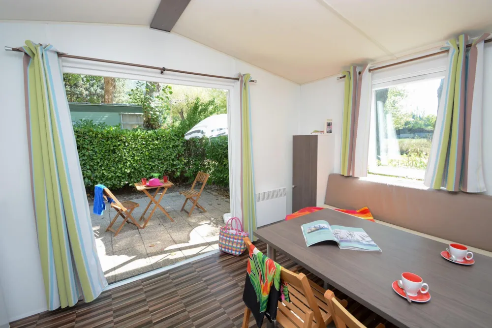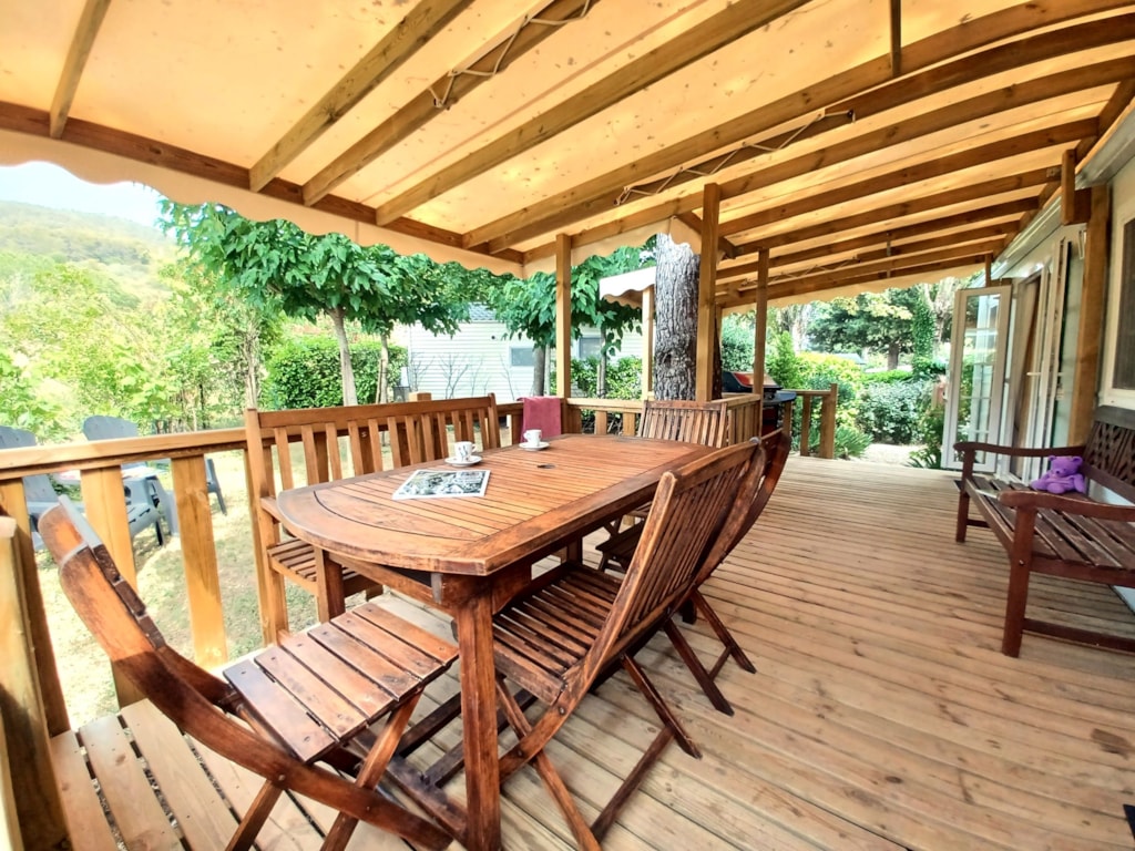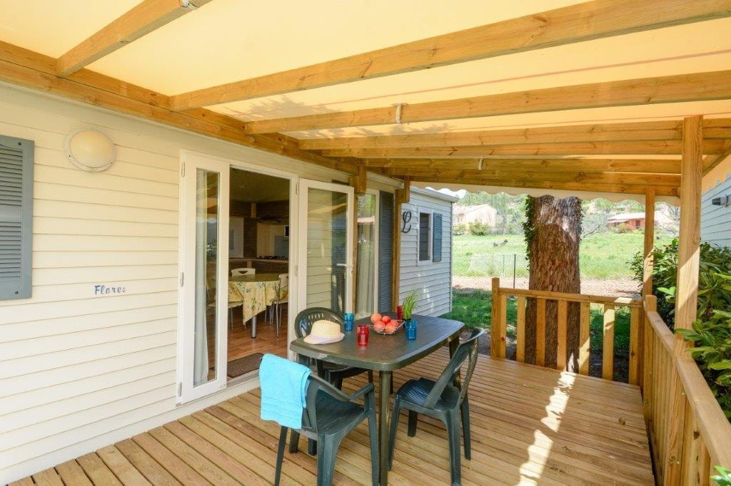 Vous partez en vacances pour profiter de l'extérieur ? Choisissez ce mobil home avec jardin privatif et terrasse couverte.