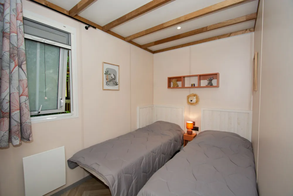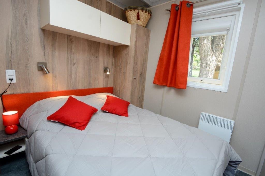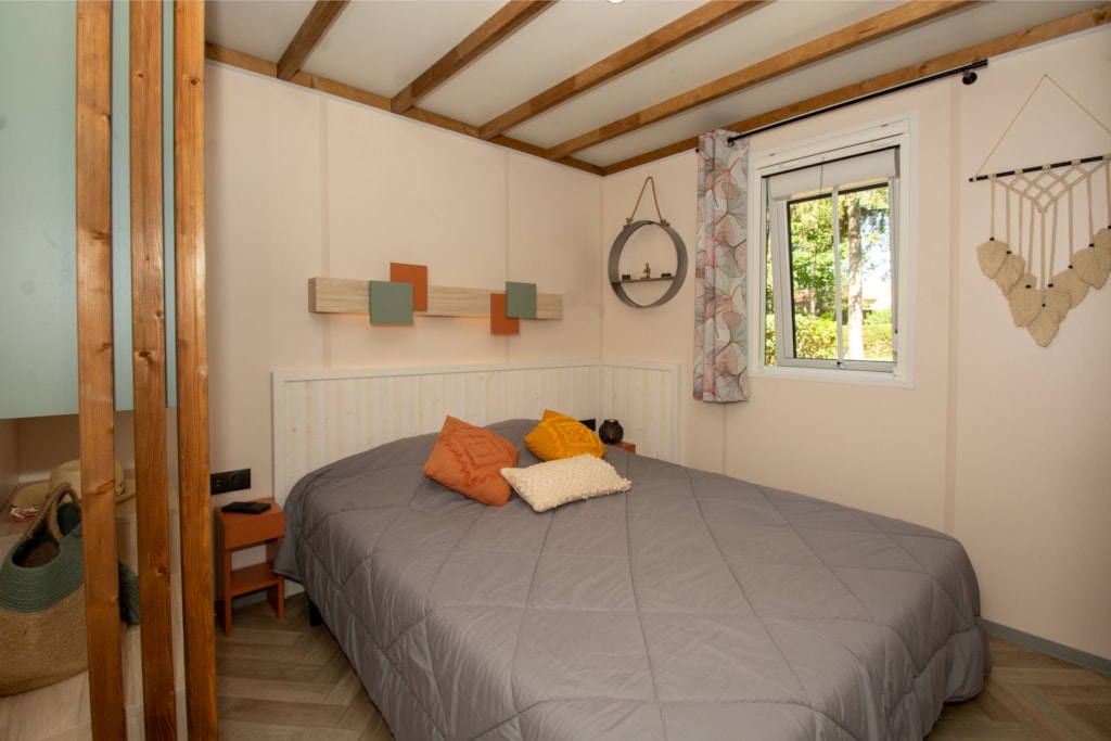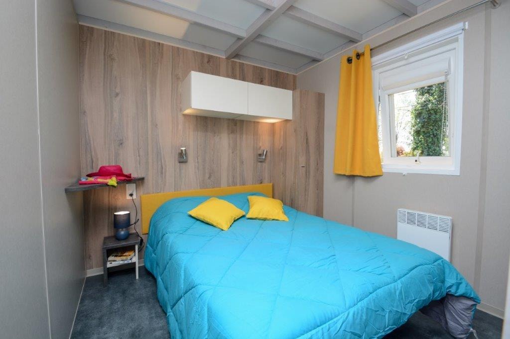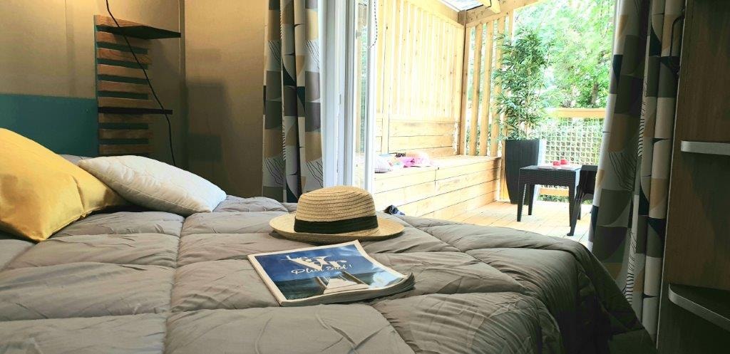 Ce type de bungalow de 40m2 est pensé comme une véritable petite maison pouvant recevoir jusqu'à 5 personnes (5ème couchage dans le séjour). Il est situé à l'extrémité du camping sur un emplacement de 180 m². Profitez de pièces de vie très spacieuses, de chambres avec nombreux rangements et d'une terrasse avec grand jardin privatif sans vis à vis pour des vacances ressourçantes. Excellents équipements à disposition pour un séjour reposant (lave-linge, four traditionnel, barbecue à gaz à l'extérieur, TV écran plat, très grand canapé d'angle dans le séjour, dressing dans la chambre parentale)