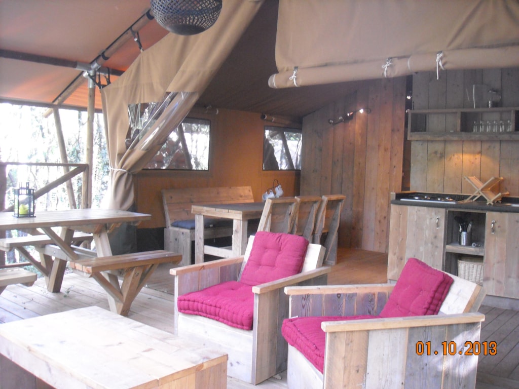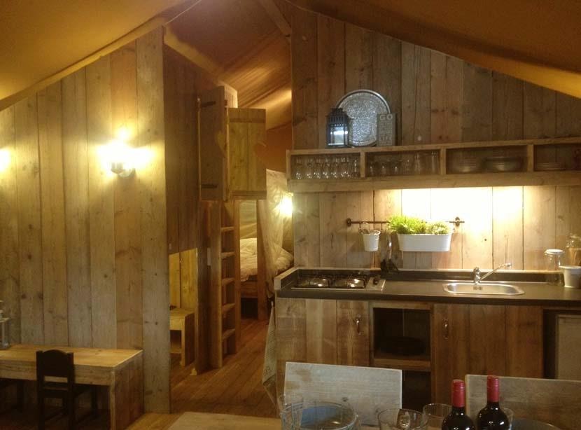 Diese Lodge zeichnet sich nochmal dadurch aus, dass sie nahezu das letzte Zelt am Platz ist und man auch extra viel Privatsphäre hat. Die Ausstattung ist komplett und man kann sich in kürzester Zeit zu hause fühlen. Zelten mit eigenem Sanitärbereich ist für mich der Gipfel vom Luxus und auch die Küche bietet eigentlich alle möglichkeiten, wenn man das denn im Urlaub möchte.
