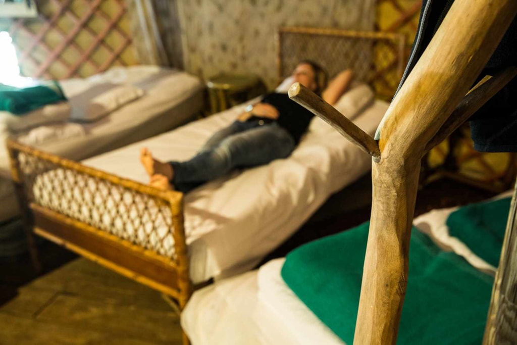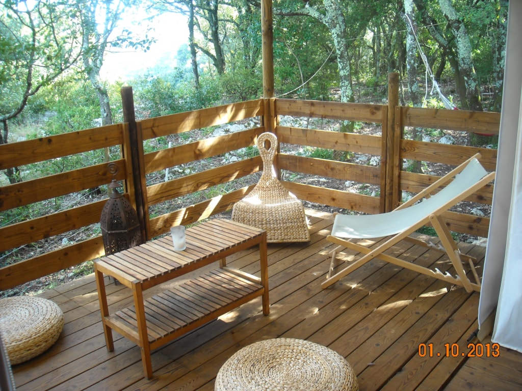 Yourte gîte d'étape pour randonneurs. uniquement des lits , pas de kitchenette. sanitaire collectif du camping