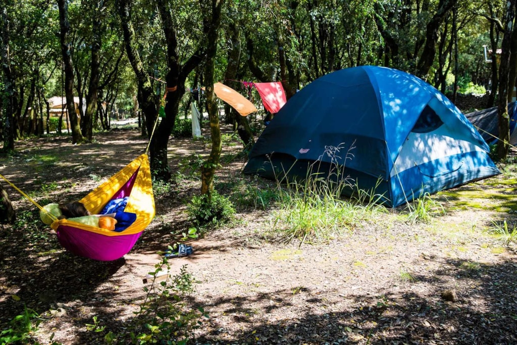 Große schattige Stellplätze mit genügend Plätzen für die Hängematten, sehr freundliche und hilfsbereite Gastgeber, warme Duschen und Trinkwasser vor Ort, Boule, Tischtennis und alle möglichen anderen Spiele stehen zur Verfügung