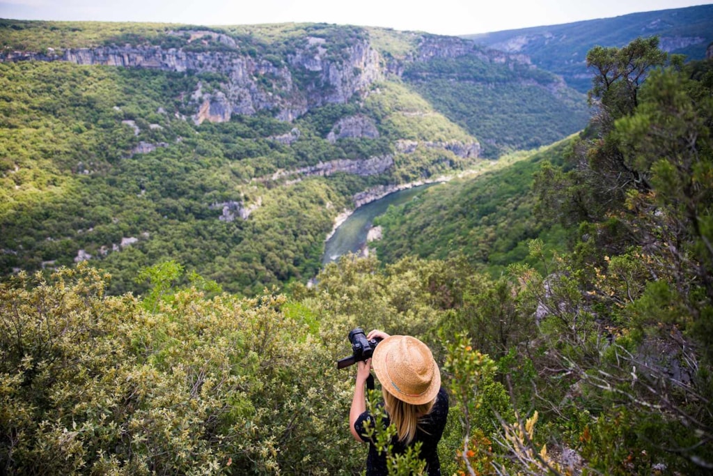 wunderschön naturbelassen gestaltete Stellflächen in weitläufigem schattigen Wald oben auf dem Kamm der Schlucht; idyllisches Flussufer in nur 25 min über Pfad erreichbar (etw. Geröll), unweit Pont d'Arc; in der Region viele spektakuläre Höhlen zu besichtigen und kleine Städtchen, bleiben keine Wünsche offen zwischen Himmel und Erde,