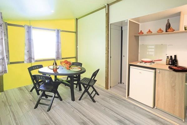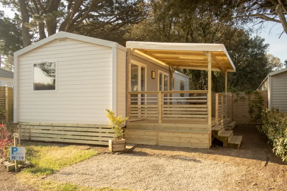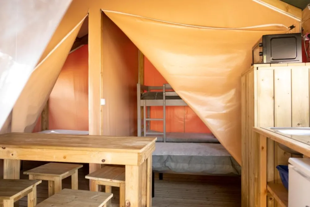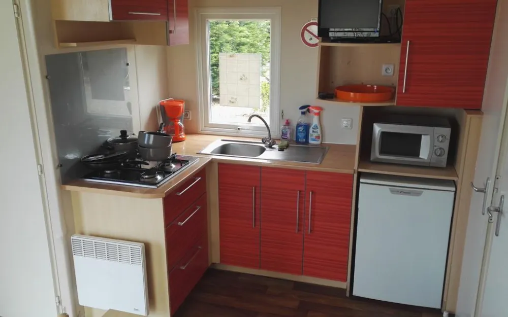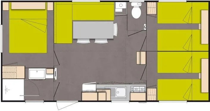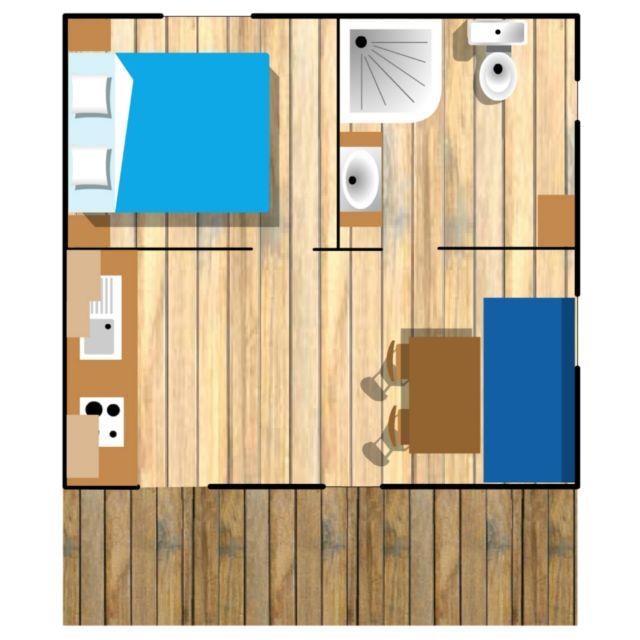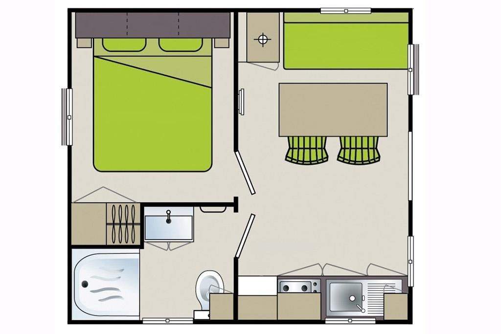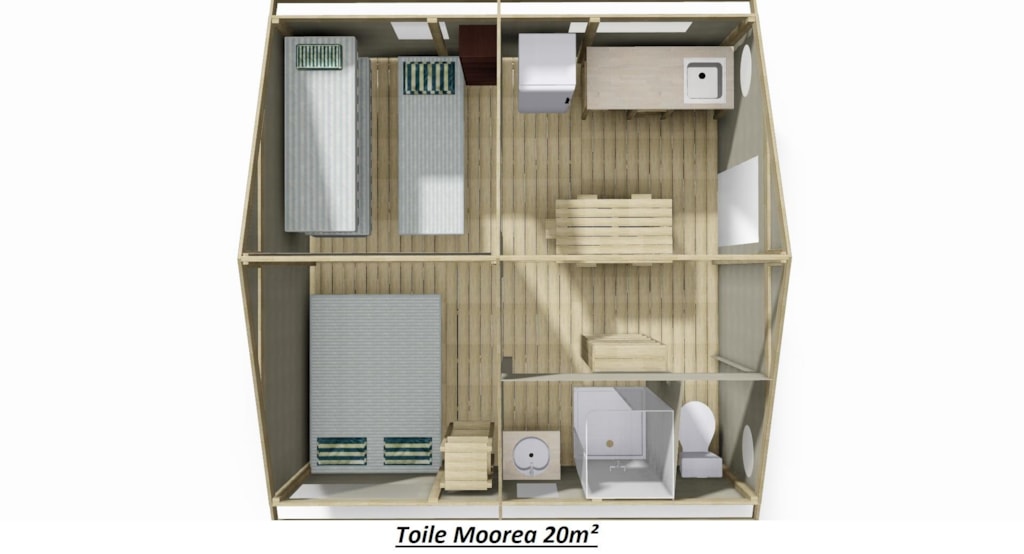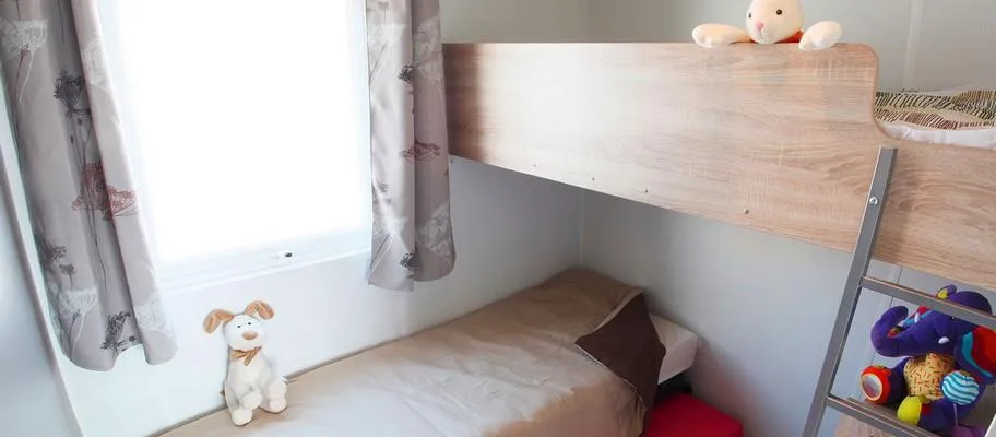1 bedroom with 1 bed of 140 cm 1 bedroom with 2 bunk beds (50kg max) of 80cm 3m² porch