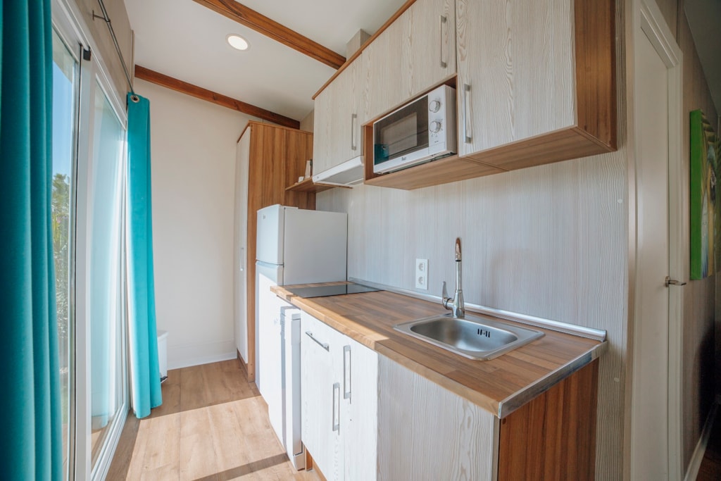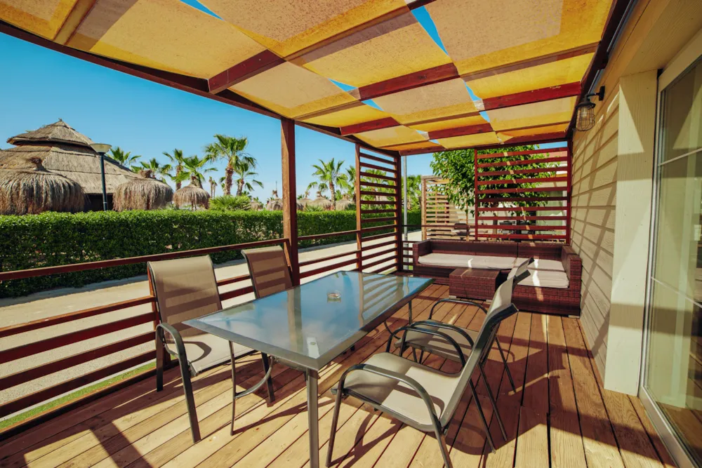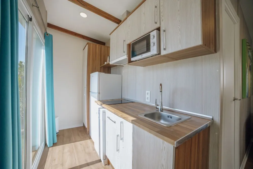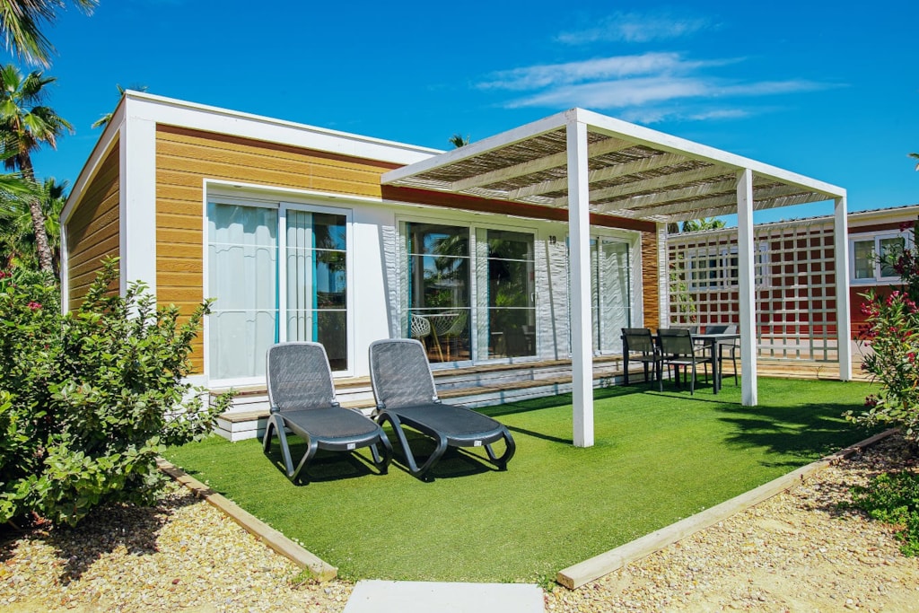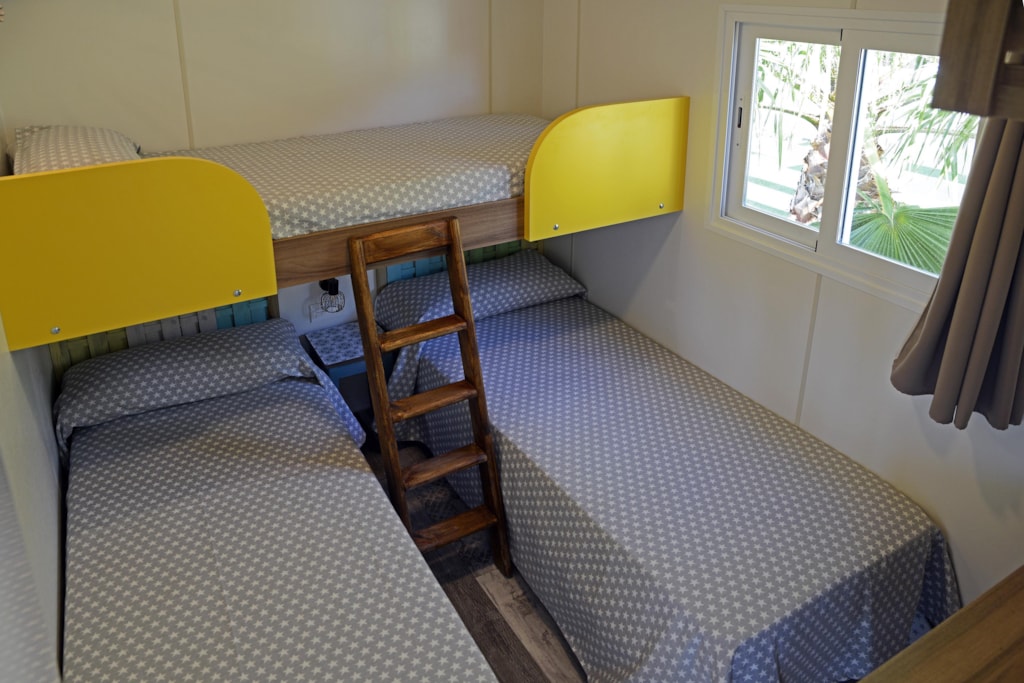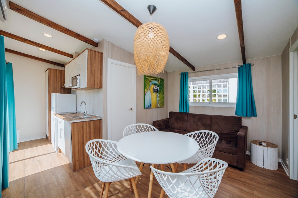 Vintage-Design mit einer Havanna-Atmosphäre und einer Fläche von 32m2. Konzipiert für Familien mit bis zu 5 Personen. Sie befinden sich direkt neben dem exklusiven Tahiti-Schwimmbad. Sie sind komplett ausgestattet und verfügen über eine Küche, ein Wohnzimmer, ein komplettes Badezimmer, 2 Schlafzimmer (ein Doppelbett + drei Einzelbetten) und eine Terrasse mit Garten. Check In: 17:00-22:00 // Check Out: bis 12.00