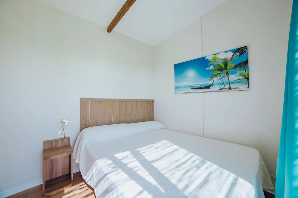 Mit einer Fläche von 33m2 und für Familien mit bis zu 5 Personen konzipiert, sind unsere Cocoa Familienhütten neben unserem exklusiven Tahiti-Schwimmbad gelegen. Sie sind komplett ausgestattet und verfügen über eine Küche, ein Wohnzimmer, ein Badezimmer, 2 Schlafzimmer (ein Doppelbett + drei Einzelbetten) und eine Terrasse. Fußgängerzone.