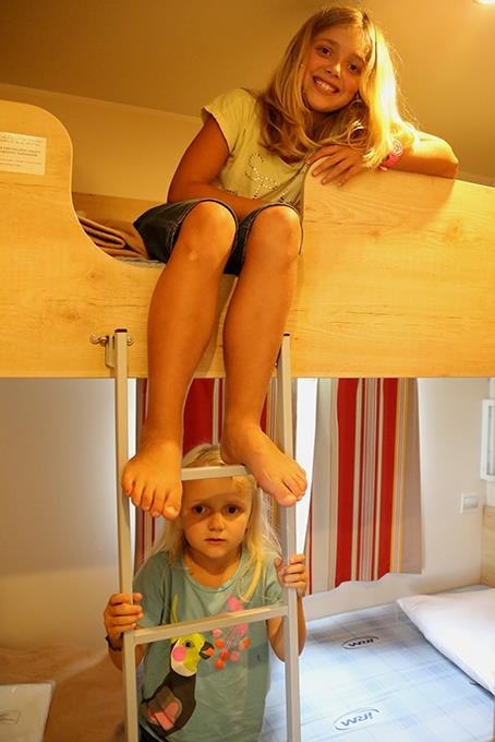 • 2 Schlafräume und ein Mezzanin : 1 Zimmer mit einem Doppelbett und ein Schlafzimmer mit zwei Etagenbetten und ein Mezzanine für 2 Betten.