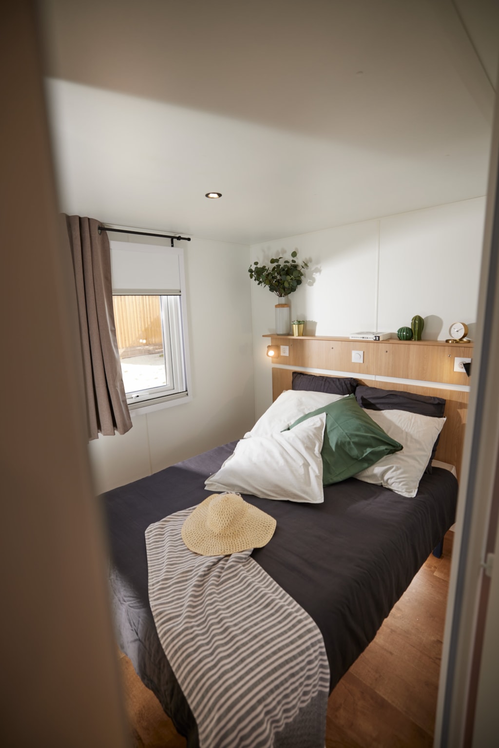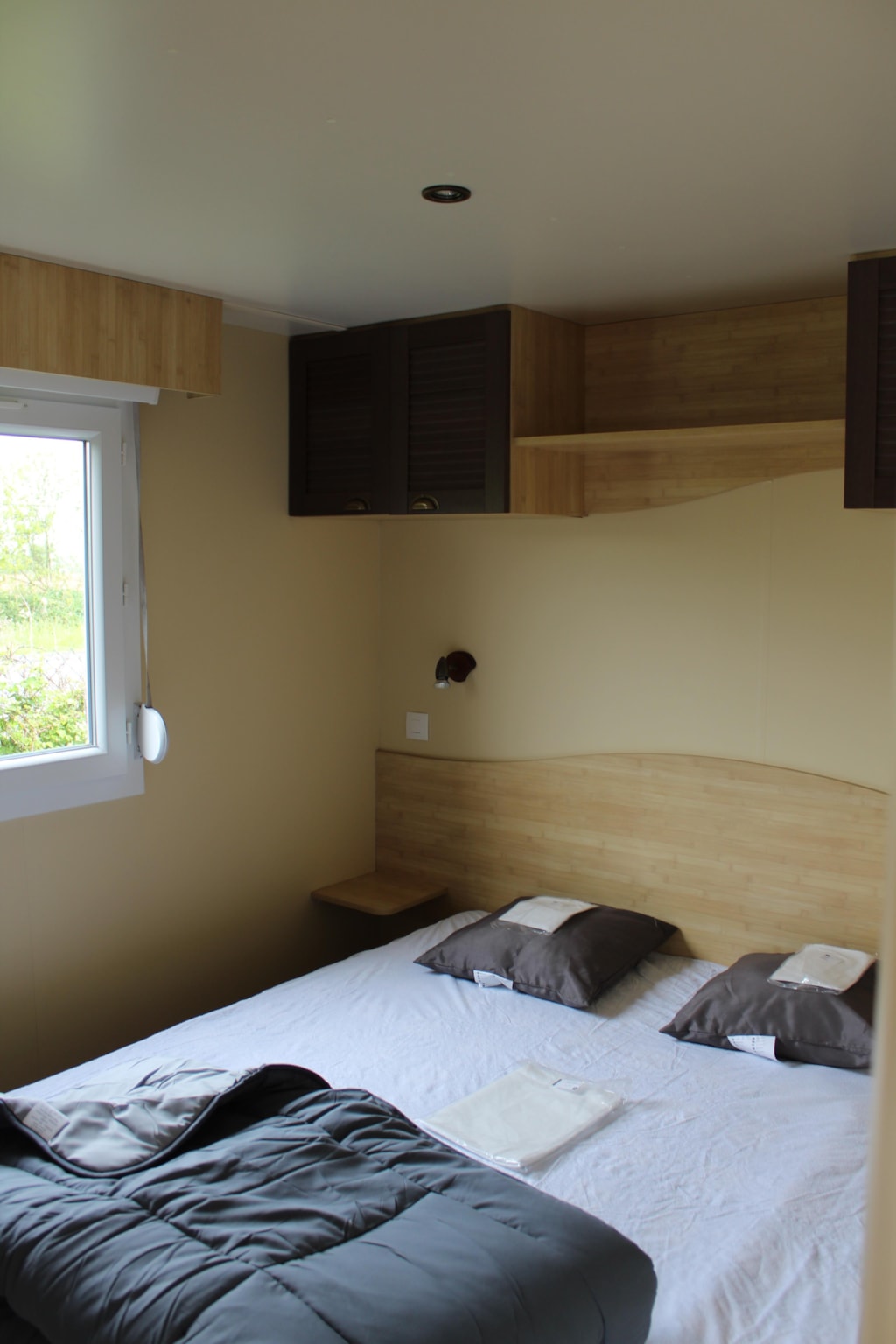 Mobil home PMR avec rampe d'accès pour fauteuil , nouveauté 2022 , grand espace pour circuler et salle de bain adapté
