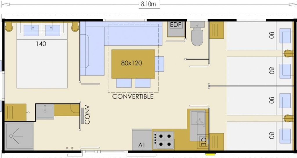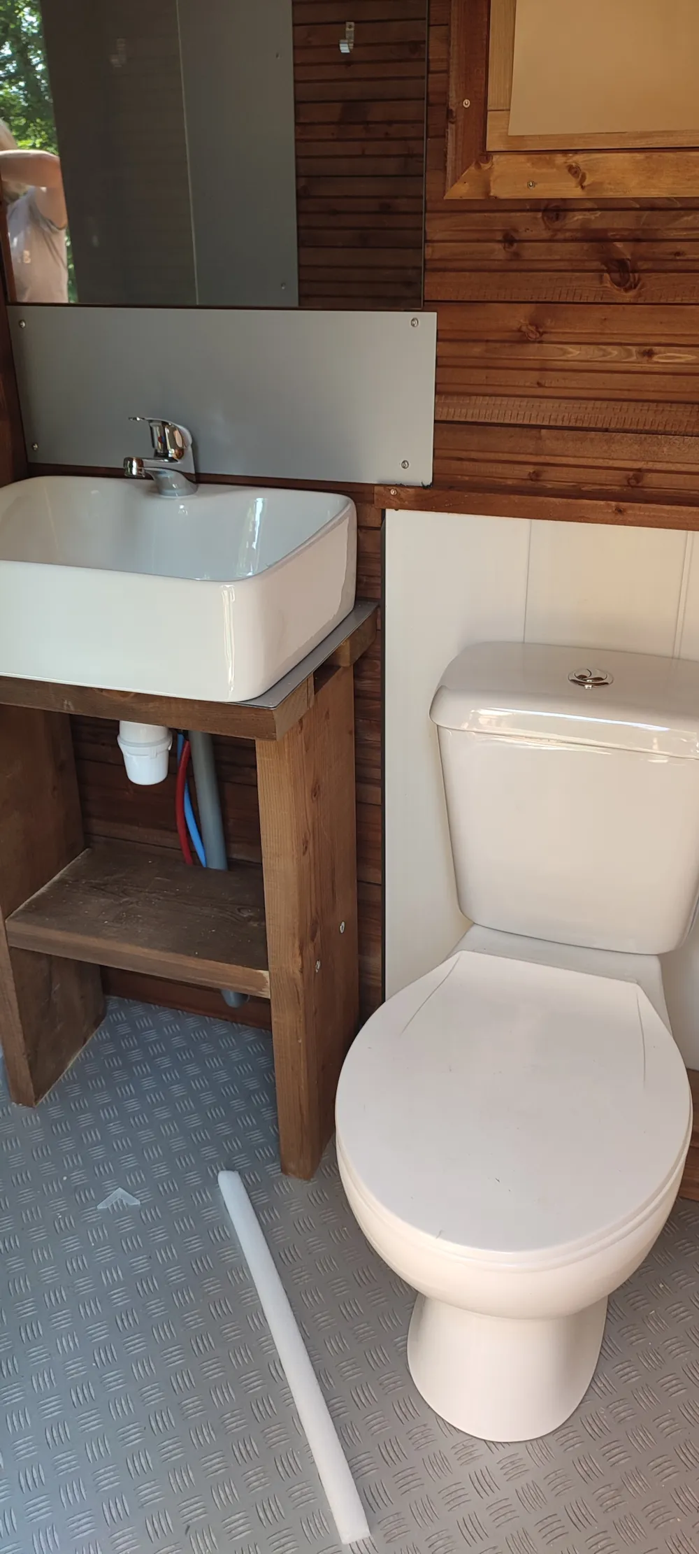 Campen Sie komfortabel mit eigenem WC, Dusche, ausgestatteter Kochnische (Spüle, Gasherd und Kühlschrank)