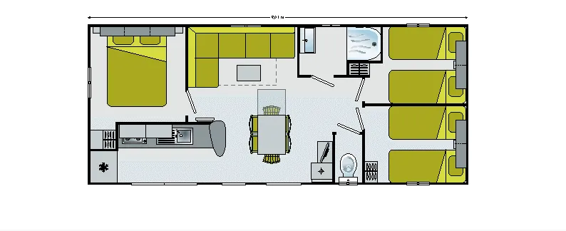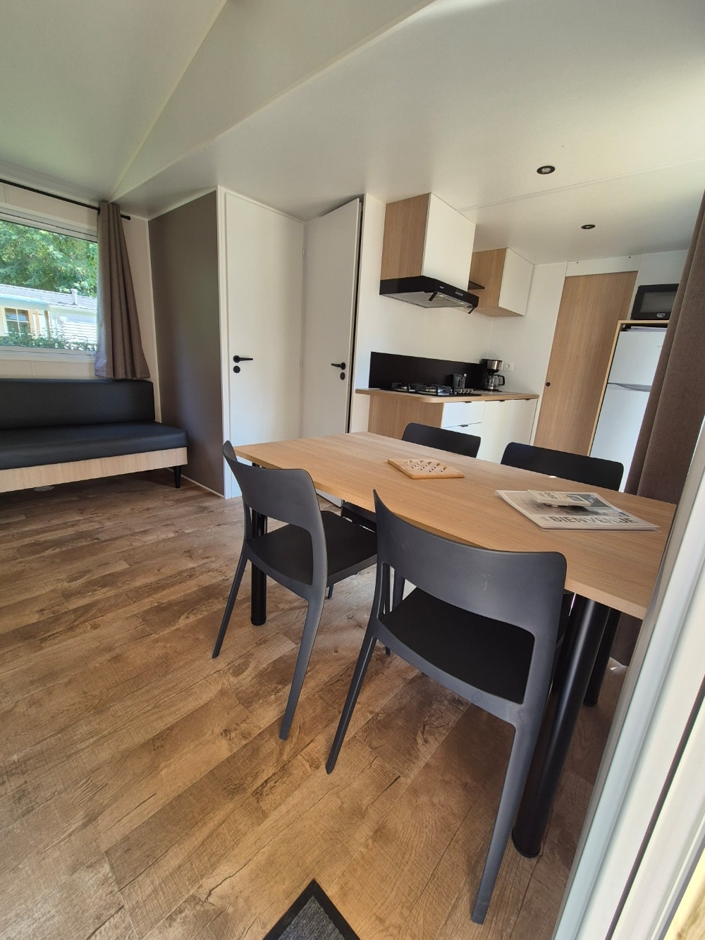 90 m² große, solide Ferienhäuser, 2 Schlafzimmer im Obergeschoss, darunter 1 Schlafzimmer mit 1 140-cm-Bett und 1 Schlafzimmer mit 3 90-cm-Einzelbetten (Möglichkeit, 2 Einzelbetten zusammenzustellen, um 2 Personen zu schlafen) und einem zusätzlichen Klappbett. Erdgeschoss mit Einbauküche, 4-Flammen-Gasherd, Backofen, Mikrowelle, Geschirrspüler, Waschmaschine, Toaster, Filterkaffeemaschine und Dolce Gusto, Wohnzimmer mit Schlafsofa, TV, Badezimmer (Dusche) mit Handtuchtrockner und separater Toilette. MÖGLICHKEIT, zu jeder Jahreszeit zu MIETEN Geschlossenes Äußeres