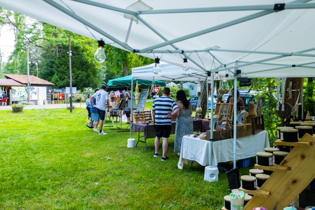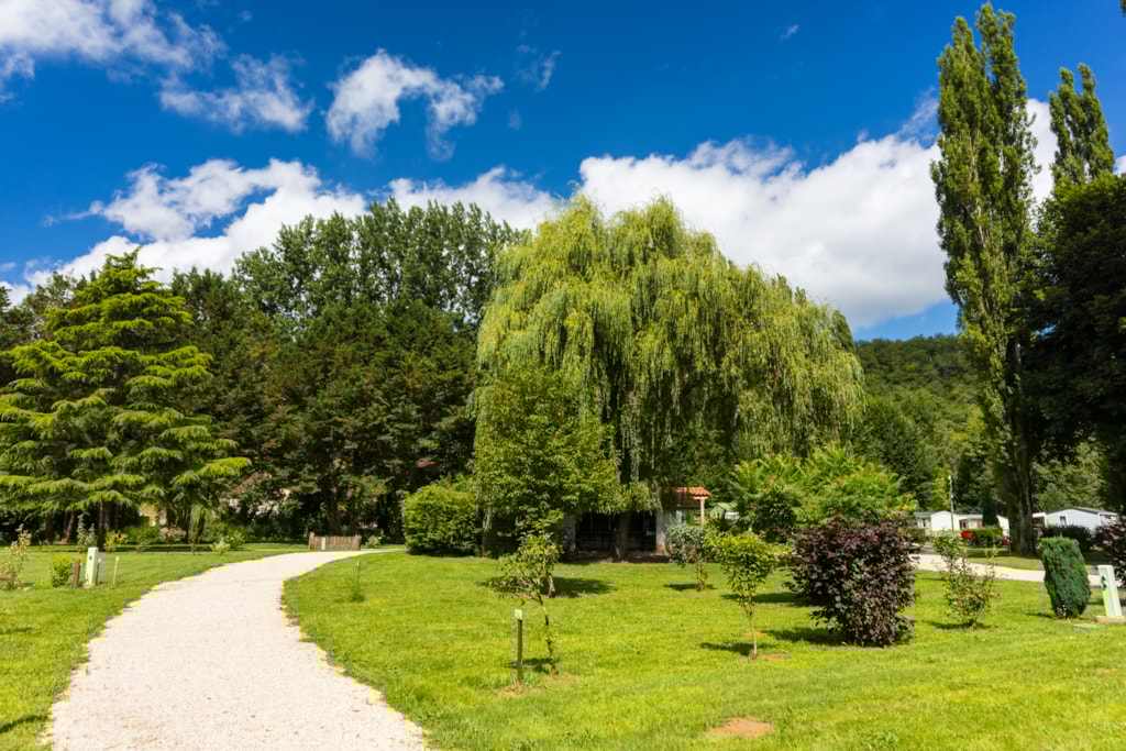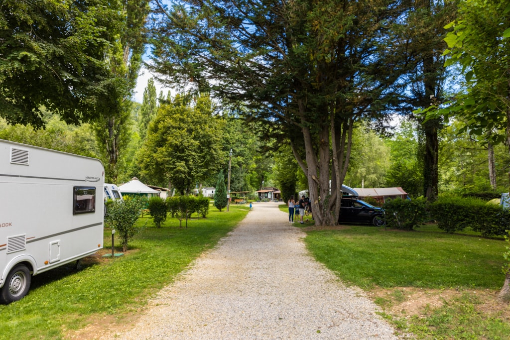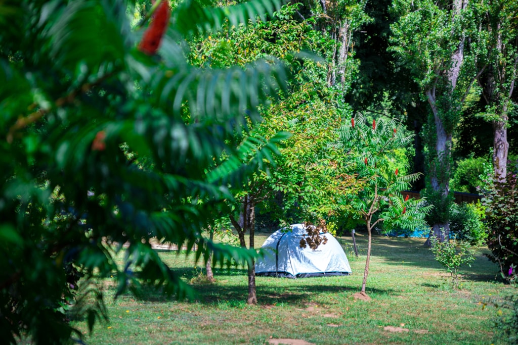Stellplätze für Zelte, Wohnwagen oder Wohnmobile mit einer Fläche von 90 bis 140 m2. dediziertes PMR, in der Nähe von Sanitäranlagen, mit Strom (10 A, europäische Steckdosen).