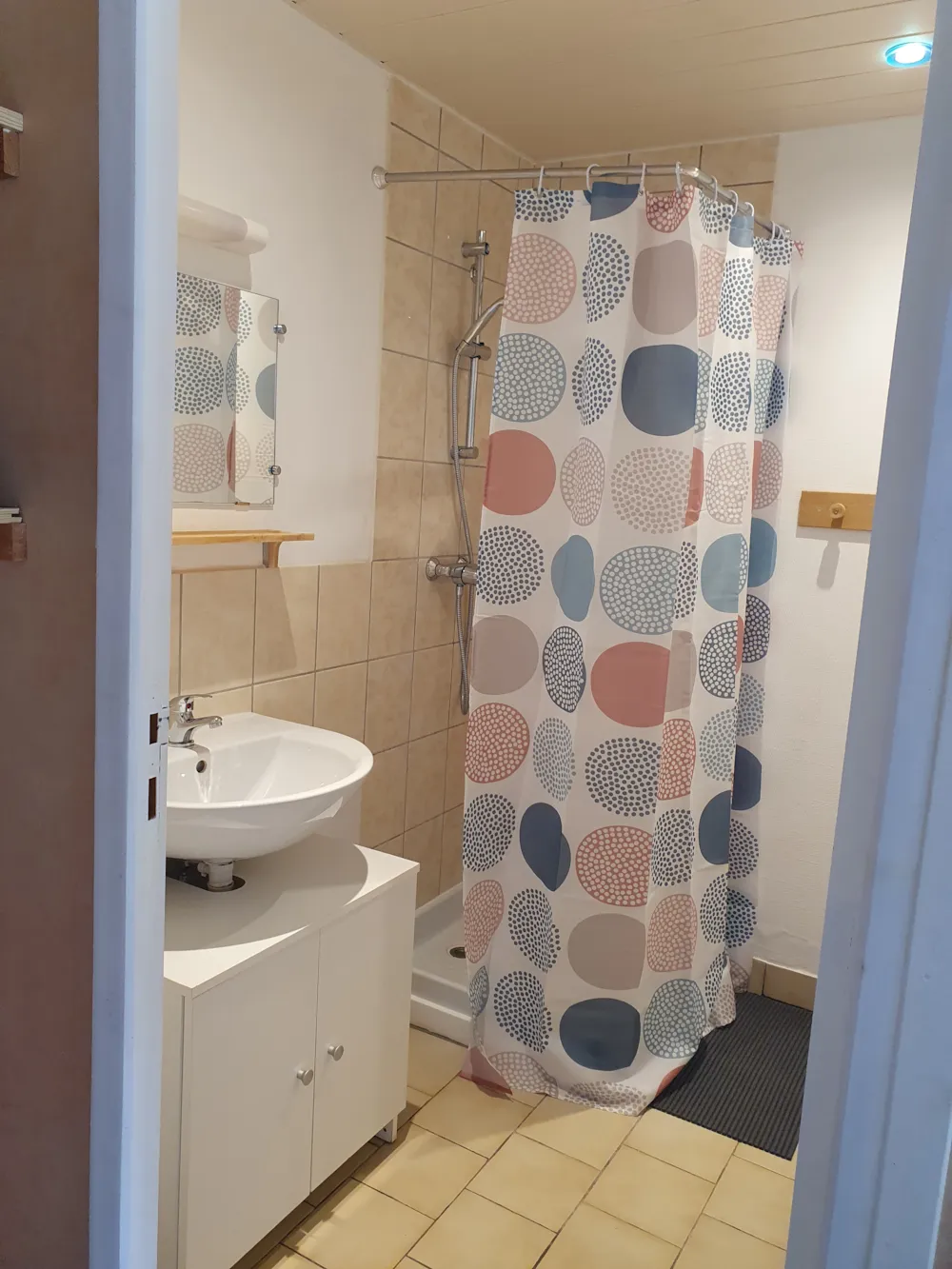 Das Badezimmer verfügt außerdem über einen überdachten Anbau mit Kochnische: Spüle, Kochfeld und Kühlschrank. Unsere Stellplätze sind ideal für einen komfortablen und erholsamen Aufenthalt und eignen sich für Zelte, Wohnwagen und Wohnmobile.