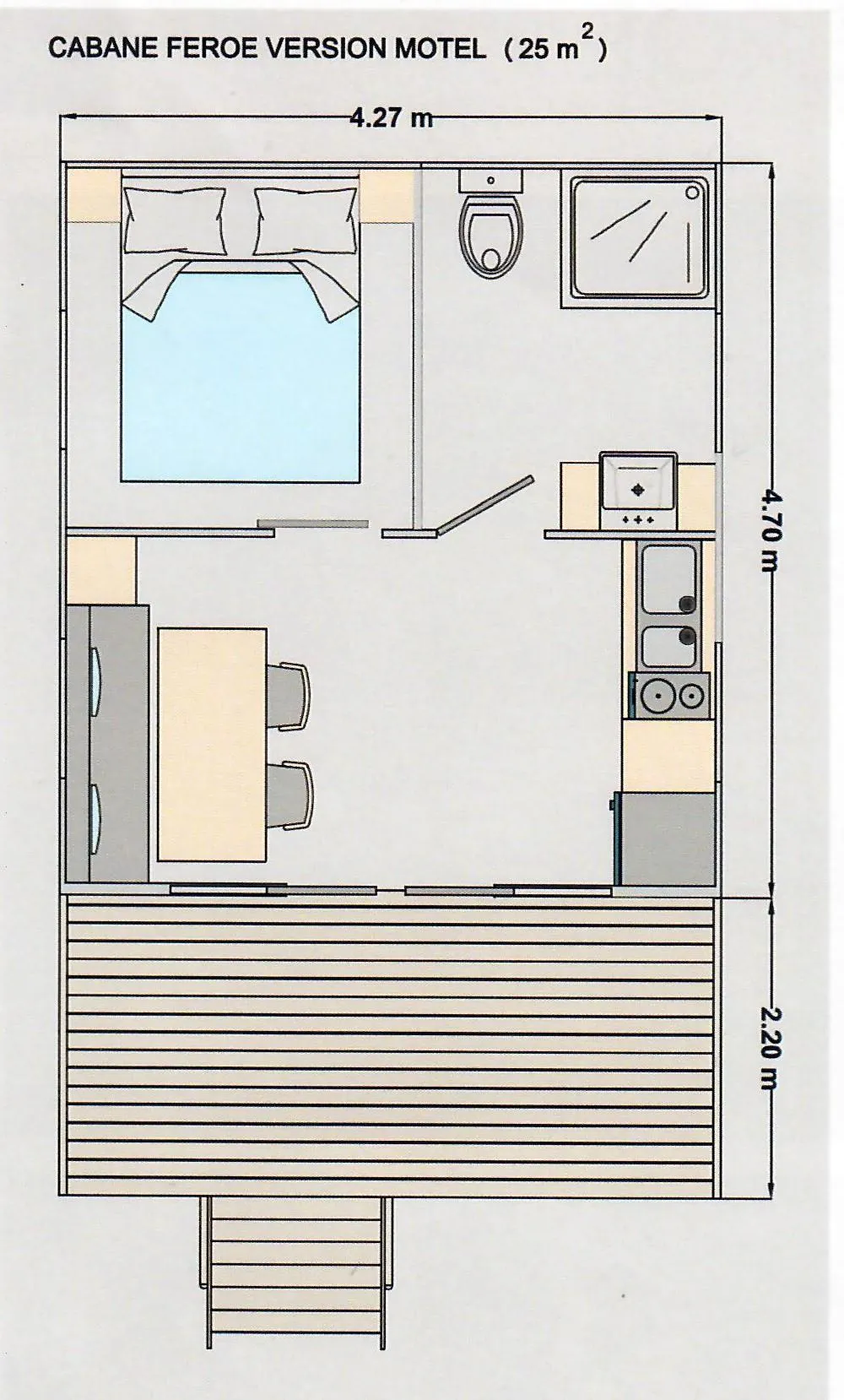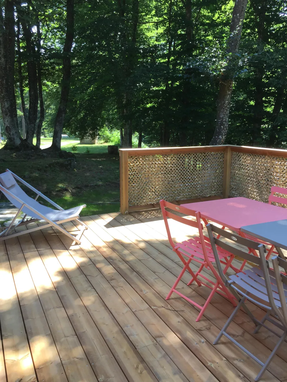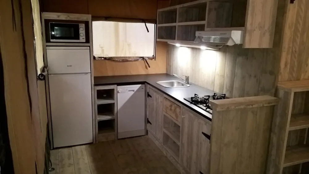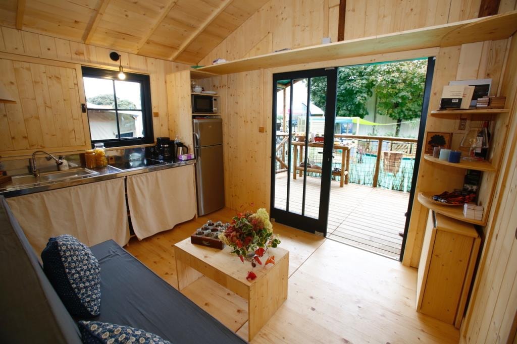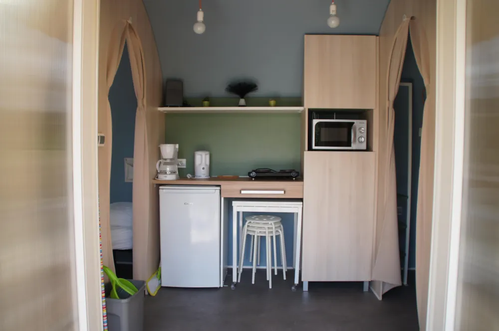 Roulotte tout confort avec salle de bain et WC. Petite cuisine équipée