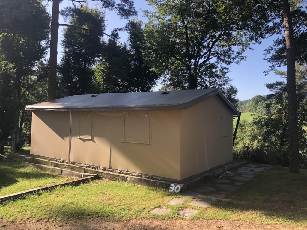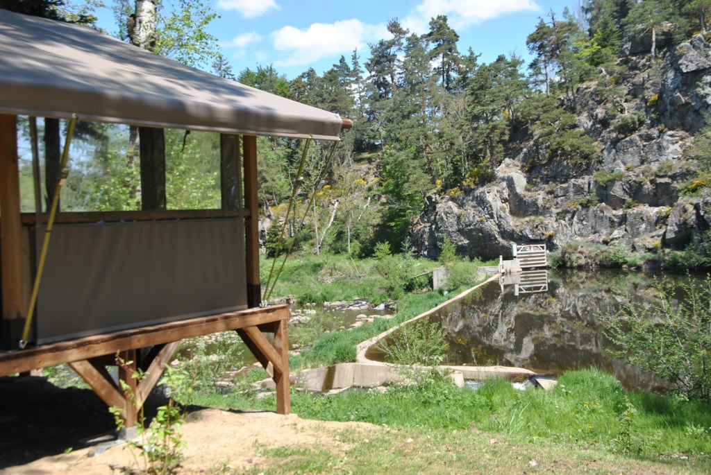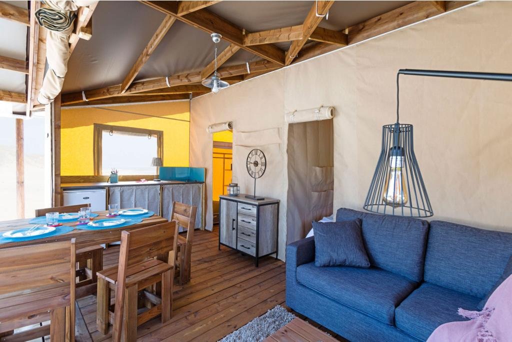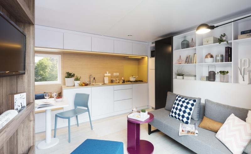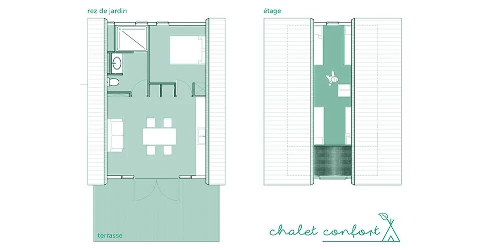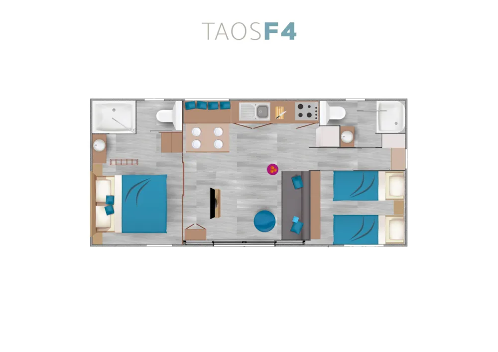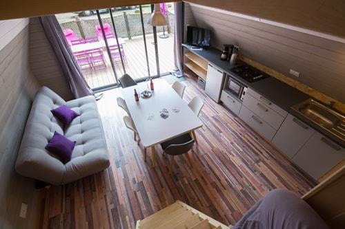 Roulotte tout confort avec salle de bain et WC. Petite cuisine équipée