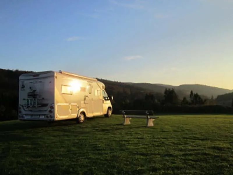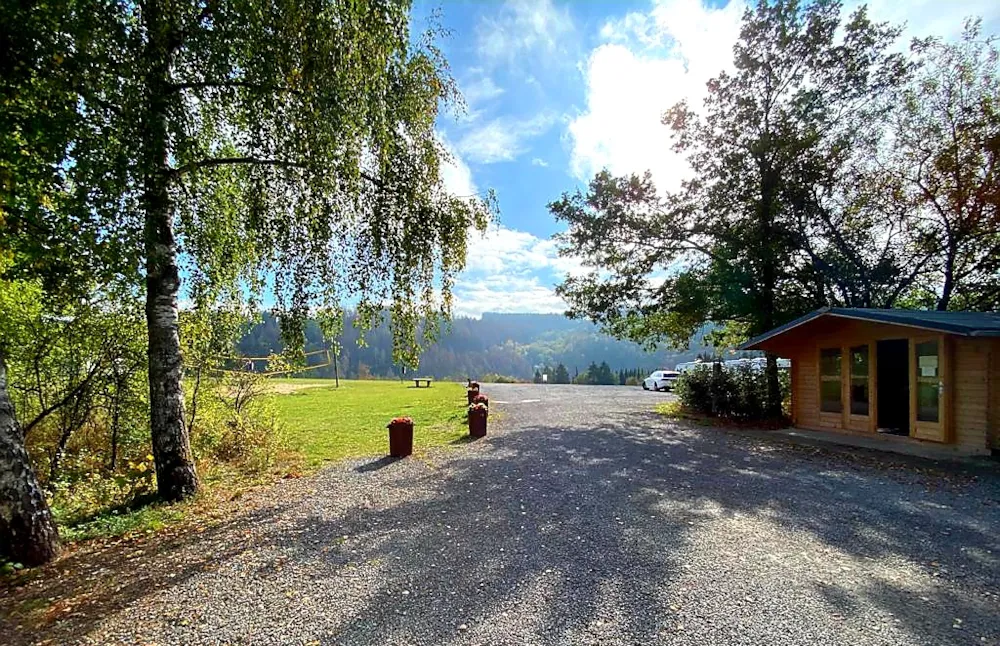 Kochnische, Wohnwagentoilette, Waschbecken, Terrasse, Sat-TV, Ess- und Kochgeschirr sind vorhanden.