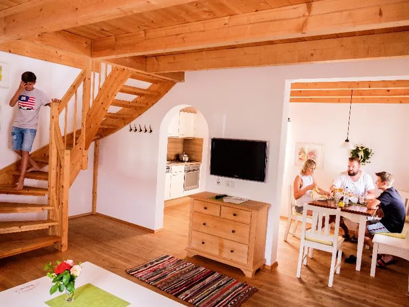 Für bis zu 4+1 Personen (ca. 35m²), große Terrasse, inkl. täglicher freier Eintritt in Thermalhallenbad und Saunalandschaft, zzgl. Kurtaxe