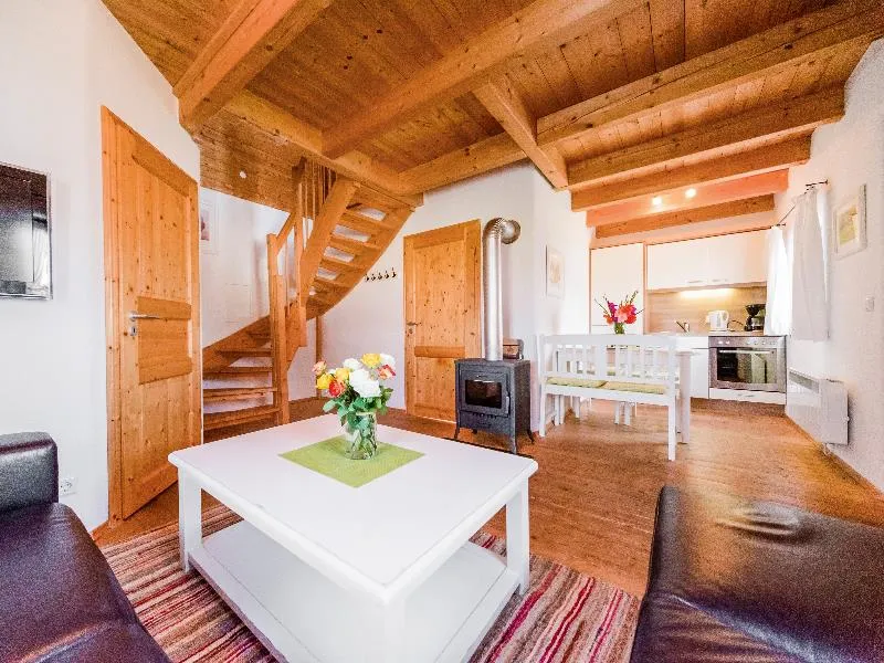 Rund 90 m² Wohnfläche (mit Terrasse und Balkon) auf zwei Etagen für bis zu sechs Personen, mit privater Sauna, inkl. täglicher freier Eintritt in Thermalhallenbad und Saunalandschaft, zzgl. Kurtaxe