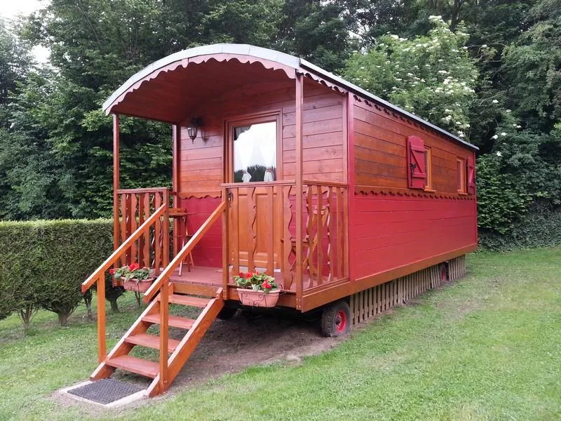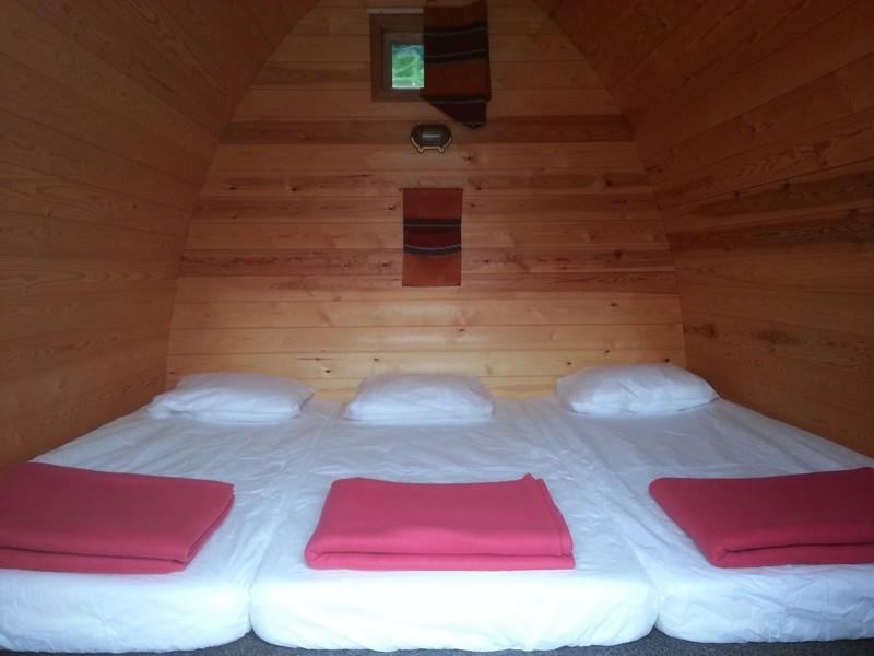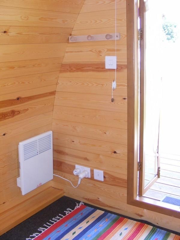 Pour un séjour proche de la nature ! Il s’agit d’une éco-construction utilisant exclusivement des matériaux de construction et d’isolation naturels (isolation : laine de mouton). Cette cabane en bois permet le COUCHAGE de 2 à 3 personnes. Aménagement : 3 matelas 0.80 x 1.90 m, 3 oreillers, 3 couvertures, chauffage électrique, rideaux occultants, appliques intérieur/extérieur, prises électriques, porte fenêtre double vitrage. Equipée d'un mini réfrigérateur, d'une bouilloire électrique, verres, mugs, assiettes, couverts. Table pique-nique et barbecue à charbon de bois. Les sanitaires du Camping (lavabos, douches, wc, laverie) se situent à environ 80 m, douche avec monnayeur temporisé : 1 € / 5 mn. Offre les joies du camping en tente sans les inconvénients !