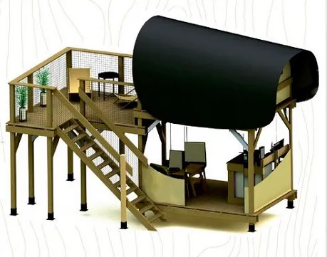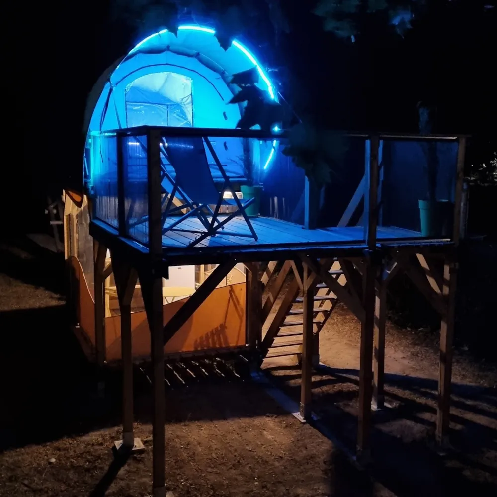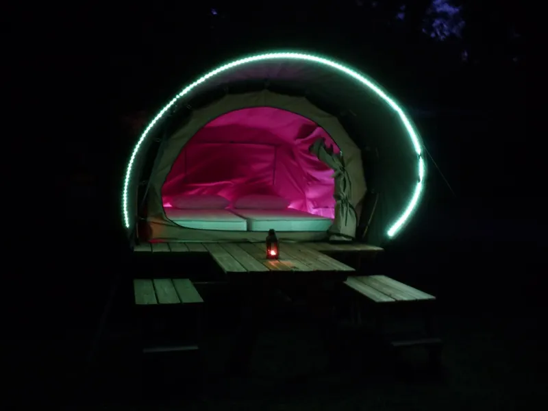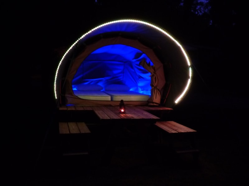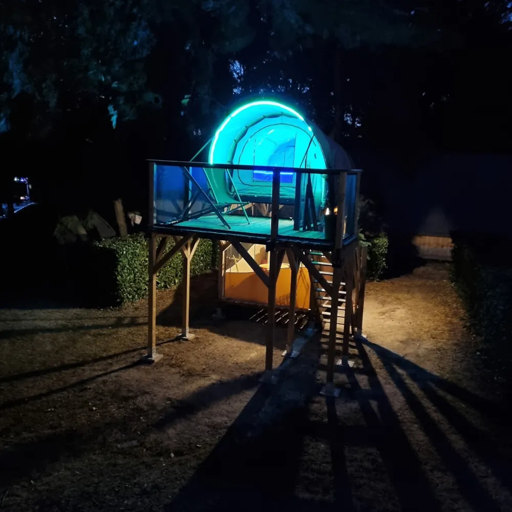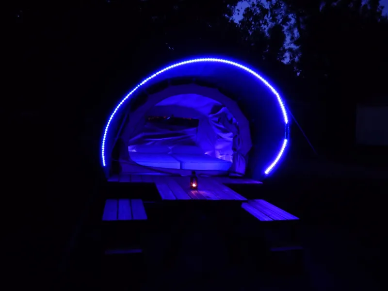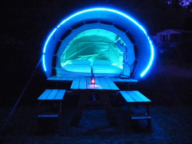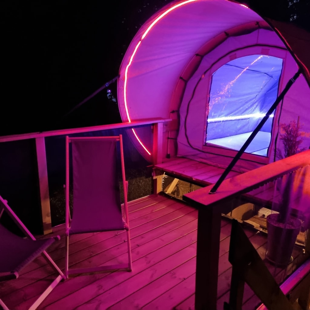 Evasion, das bereit zum komfortablen Campen! Sowohl originell als auch ungewöhnlich ist die Evasion eine gemütliche Unterkunft für 2 Personen, die ein authentisches und ungewöhnliches Camping-Erlebnis bietet. Die möblierte Terrasse vermittelt Ihnen das Gefühl, allein auf der Welt zu sein, und ihr einzigartiges und originelles Aussehen lädt Sie ein, in die Kindheit zu entfliehen, während Sie sich in Entspannung, Nickerchen und Abschalten hingeben. Diese ungewöhnliche Unterkunft ist ideal für Paare, die einen Moment der Flucht suchen. Der Innenraum ist mit Beleuchtung ausgestattet, die eine entspannende und erneuernde Atmosphäre schafft.
