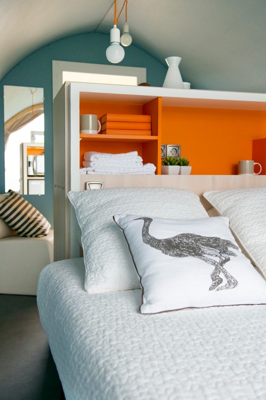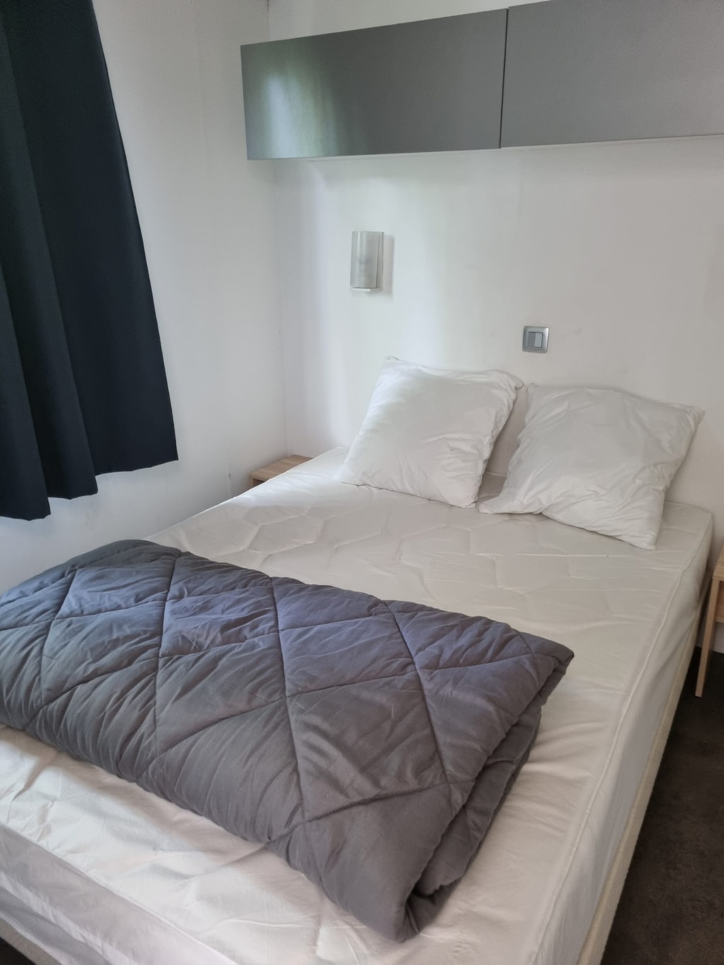 - Espace 1 grand lit pour 2 personnes de 140×190 à l’arrière. Oreillers et couettes fournis.