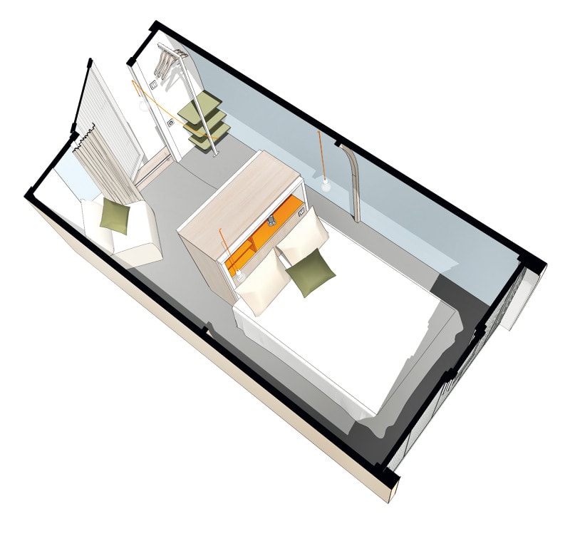 - Espace couchage pour 2 personnes avec 2 lits de 90.