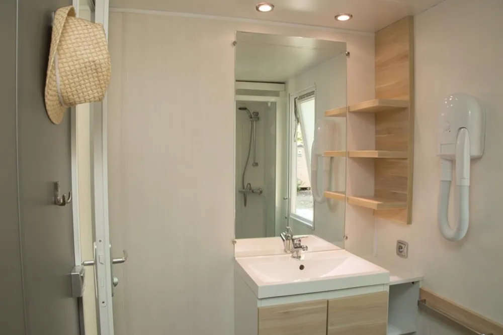 Ideal für Familie oder Freunde, das Mobilheim ist mit zwei Badezimmern ausgestattet. Der Campingplatz ist Fußgängerzone, der Parkplatz ist ausserhalb, um die Sicherheit der Kinder und die Ruhe aller zu gewährleisten.