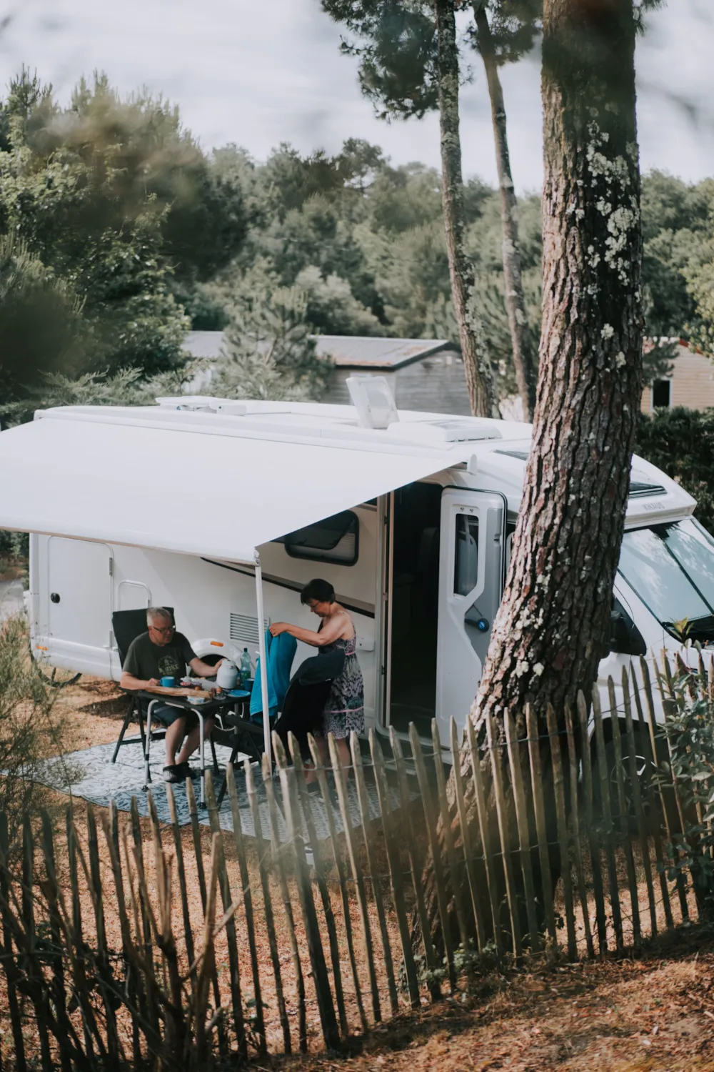 Der Campingplatz ist Fußgängerzone, der Parkplatz befindet sich draußen. Die Stellplätze sind schattiert oder halbschattiert. Die durchschnittliche Fläche beträgt 80 m². Die elektrischen Anschlüsse sind am Campingplatz verteilt. Wir empfehlen Ihnen, ein Verlängerungskabel von 25 Metern Länge mitzubringen.